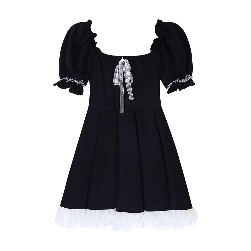 ブラックスリーブドレス サマースリムショートスカート 夏物 スーパーモール64334357315
