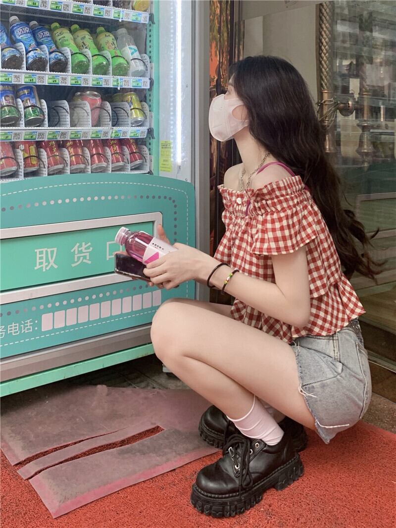 ショートトップス サマー格子柄シャツ 大人ガーリー スウィート キュート カジュアル 夏物 スーパーモール60728606721