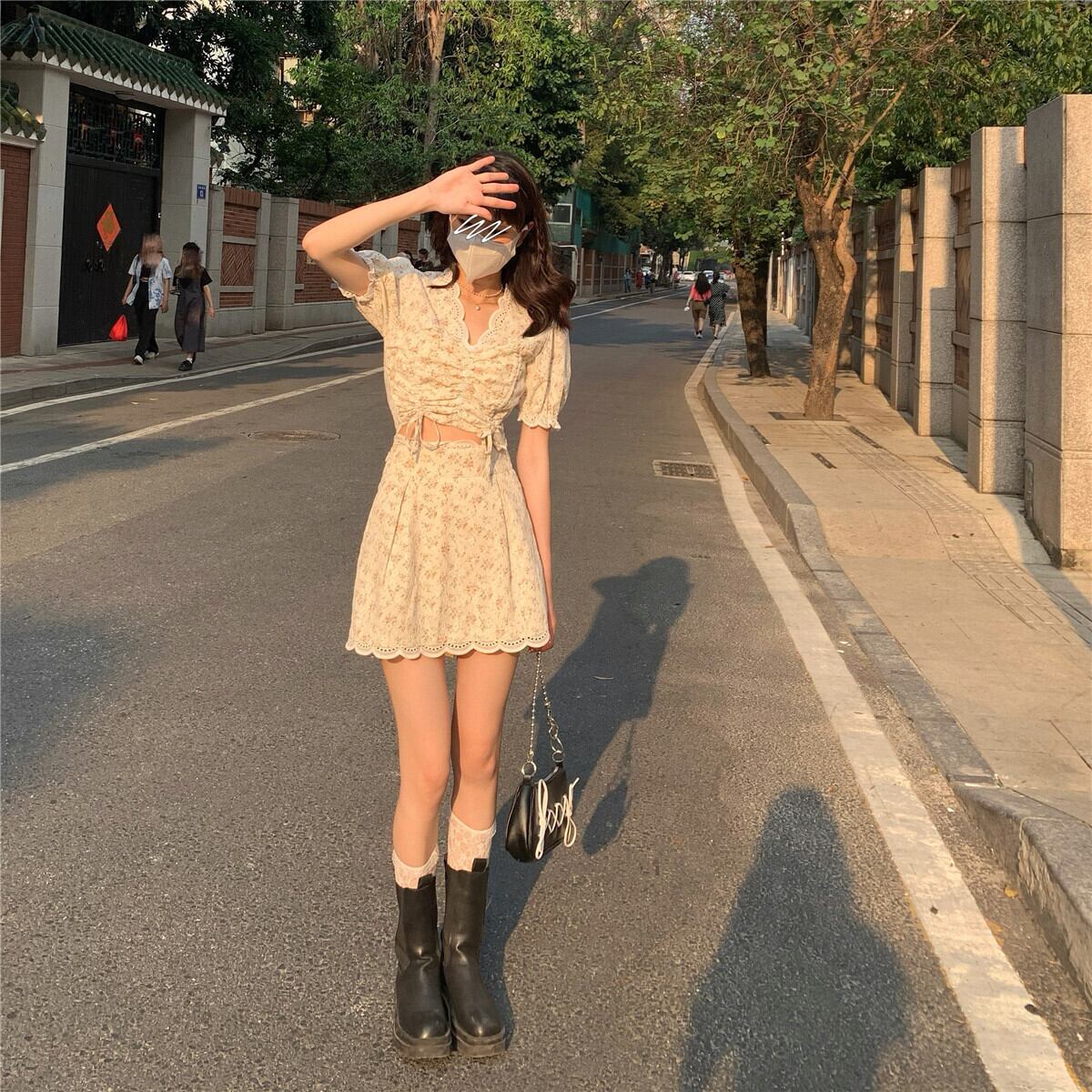 レッドサマーフローラルトップス スカート ストリート 夏物 花柄 スーパーモール27290427405