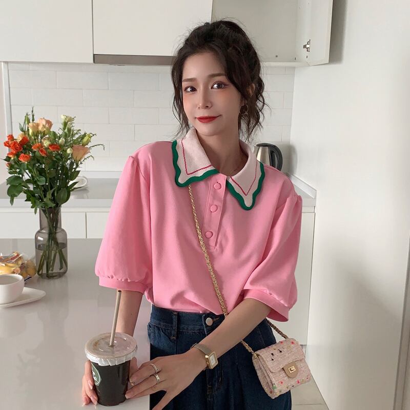 ホワイトカラースリーブTシャツ サマールーズ 夏物 スーパーモール31966545058