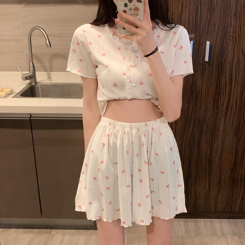 フローラルニットレディースサマー 大人ガーリー スウィート キュート カジュアル 夏物 花柄 スーパーモール96720301142
