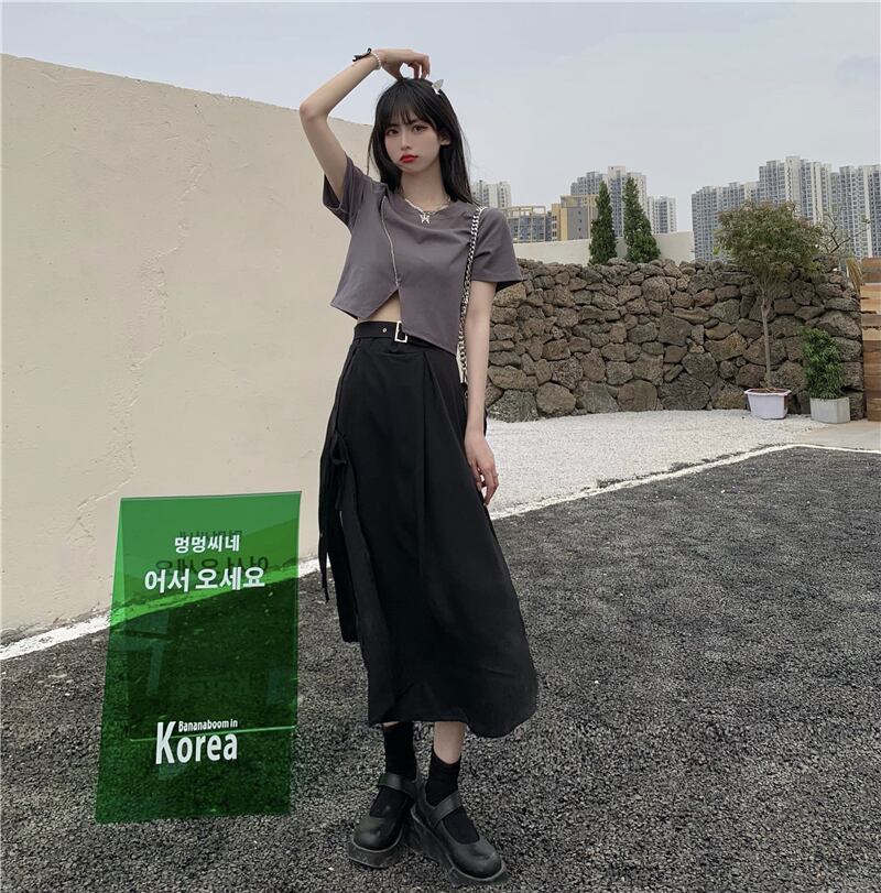 色:グレーのTシャツシングルピース,ワンピースブラックスカート