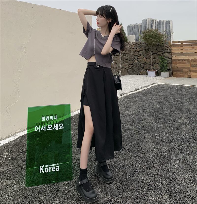 サマースカート ブラックハイウェストウェストAライン 夏物 スーパーモール47142698543