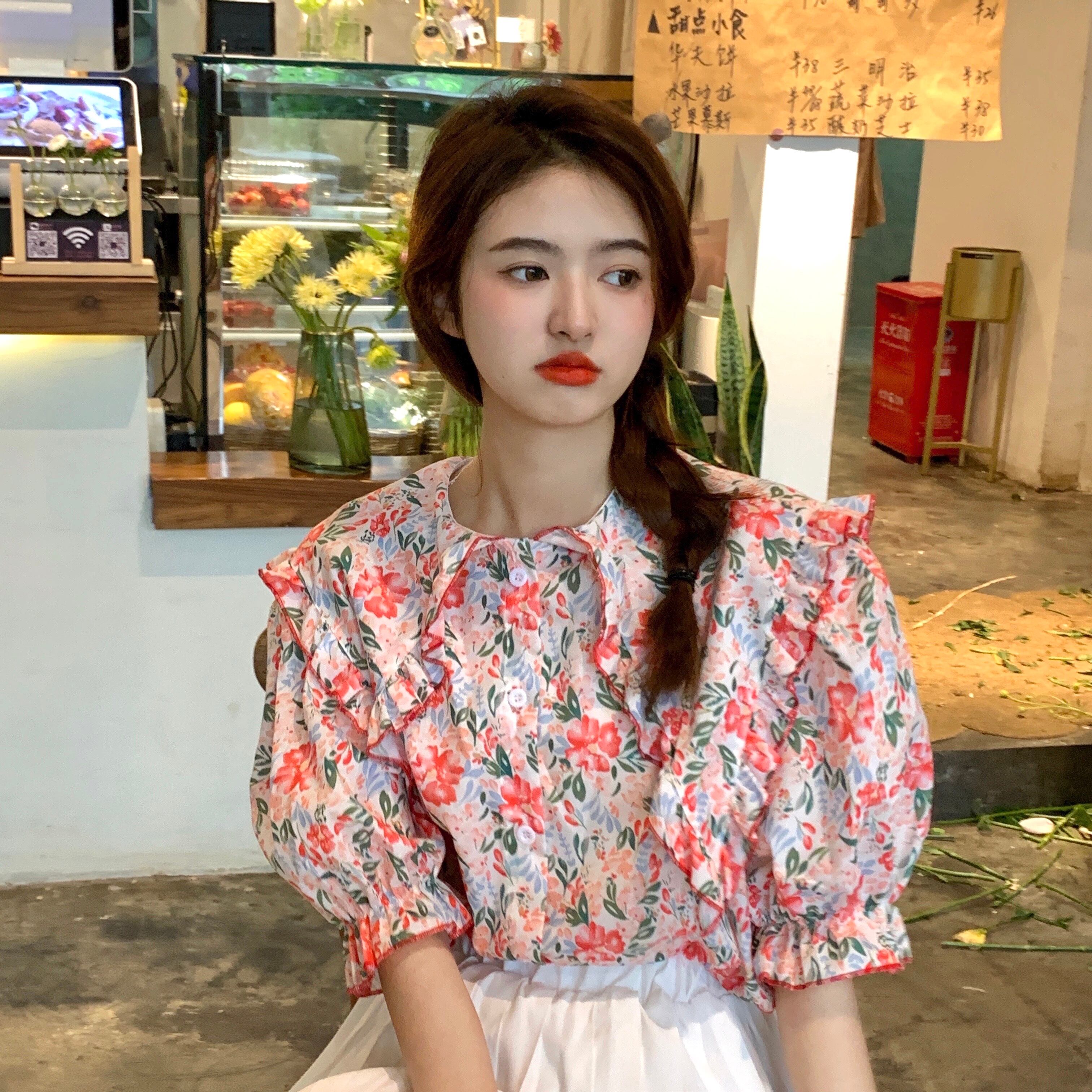 フローラルシャツ スリーブサマーカラートップス 夏物 花柄 スーパーモール70355289136