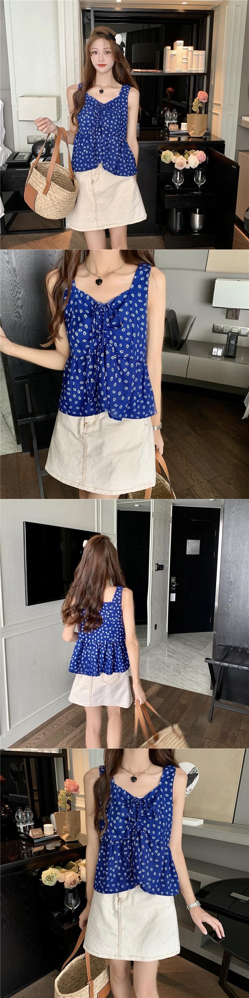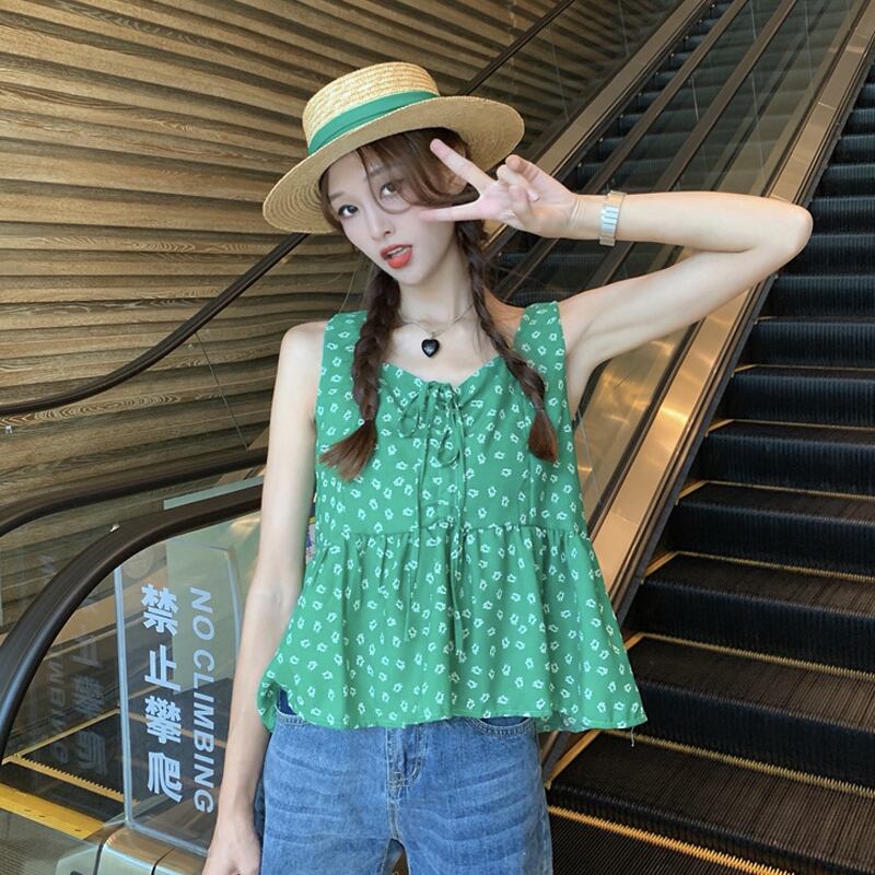 フローラルレディースサマーノースリーブショートトップス 大人ガーリー スウィート キュート カジュアル 夏物 花柄 スーパーモール29133186328