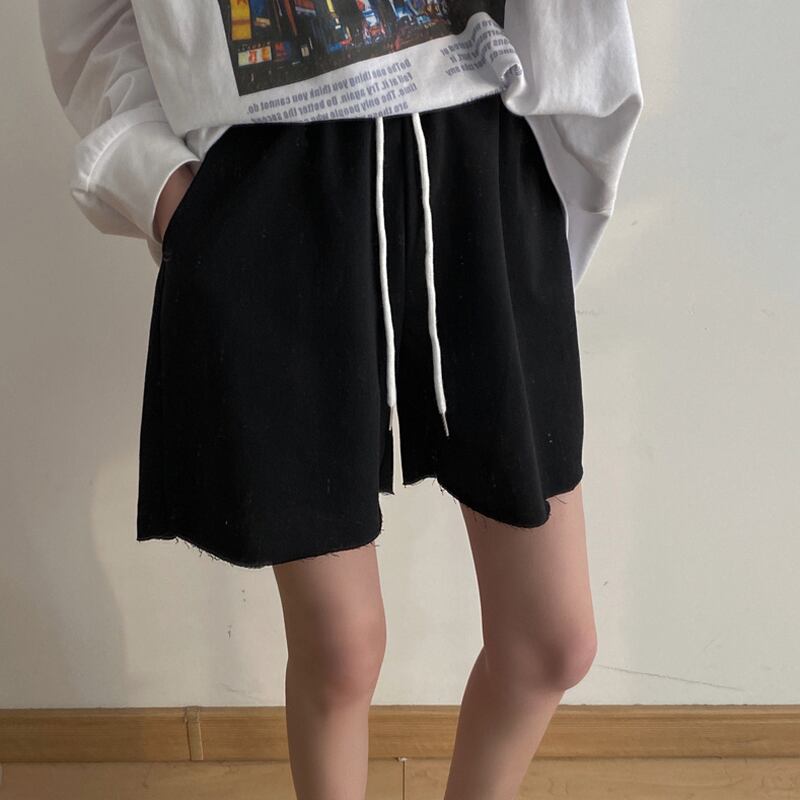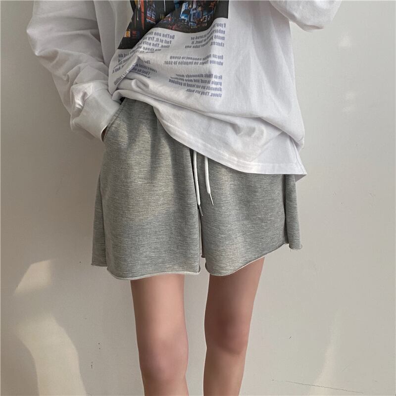 グレーショーツ サマー薄手ハイウェストウェストルーズワイドレッグカジュアルパンツ 夏物 ブルマー ワイドパンツ スーパーモール7658896018