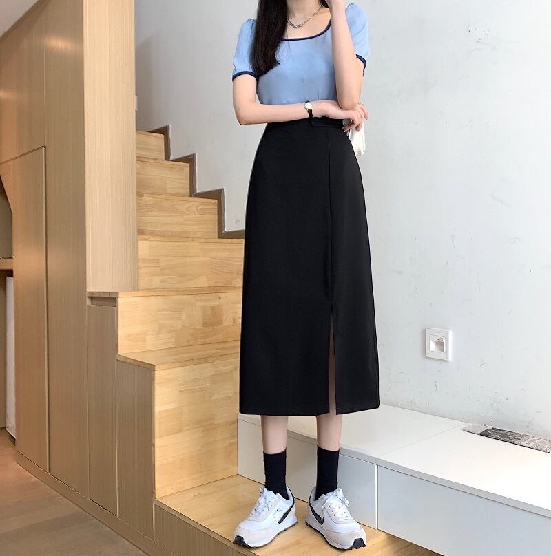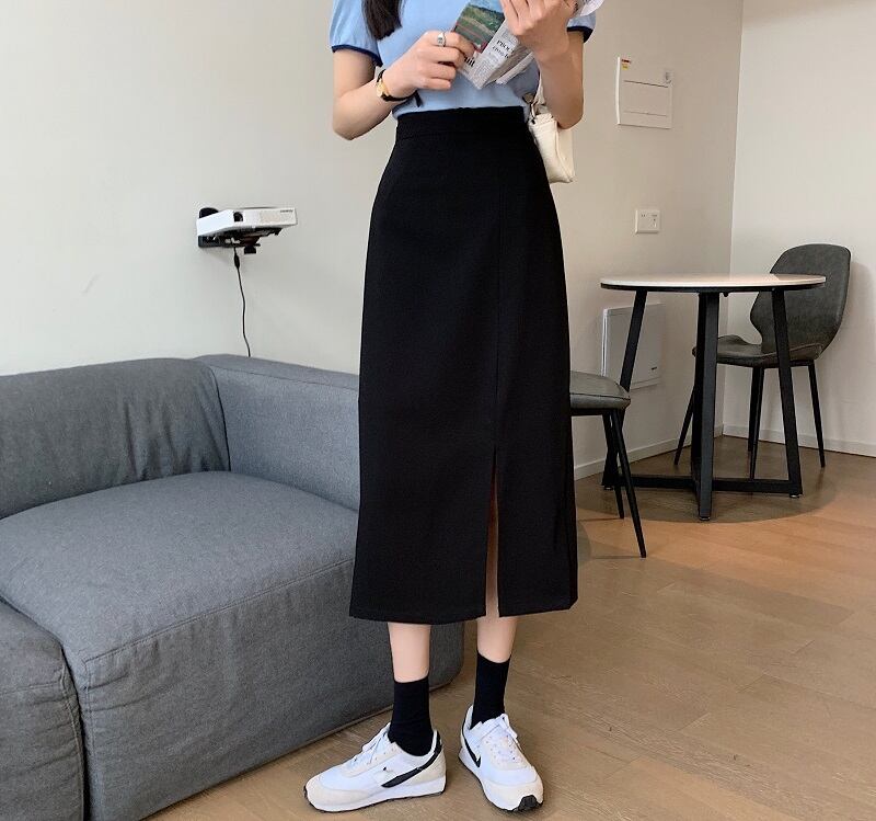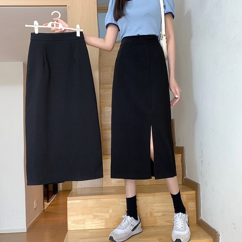 薄手ハイウェストウェストスカート サマーブラックAライン 夏物 スーパーモール49323309182