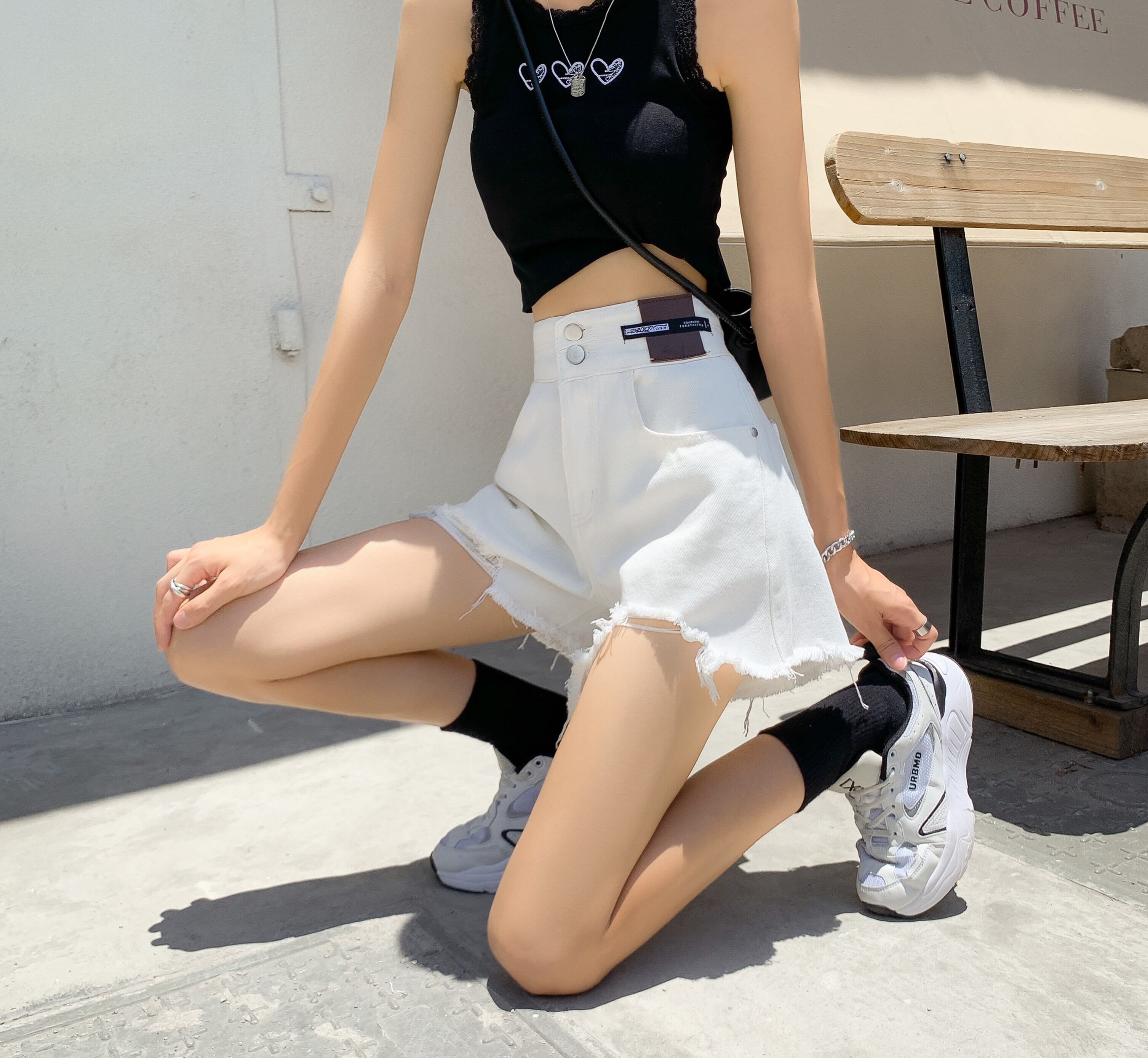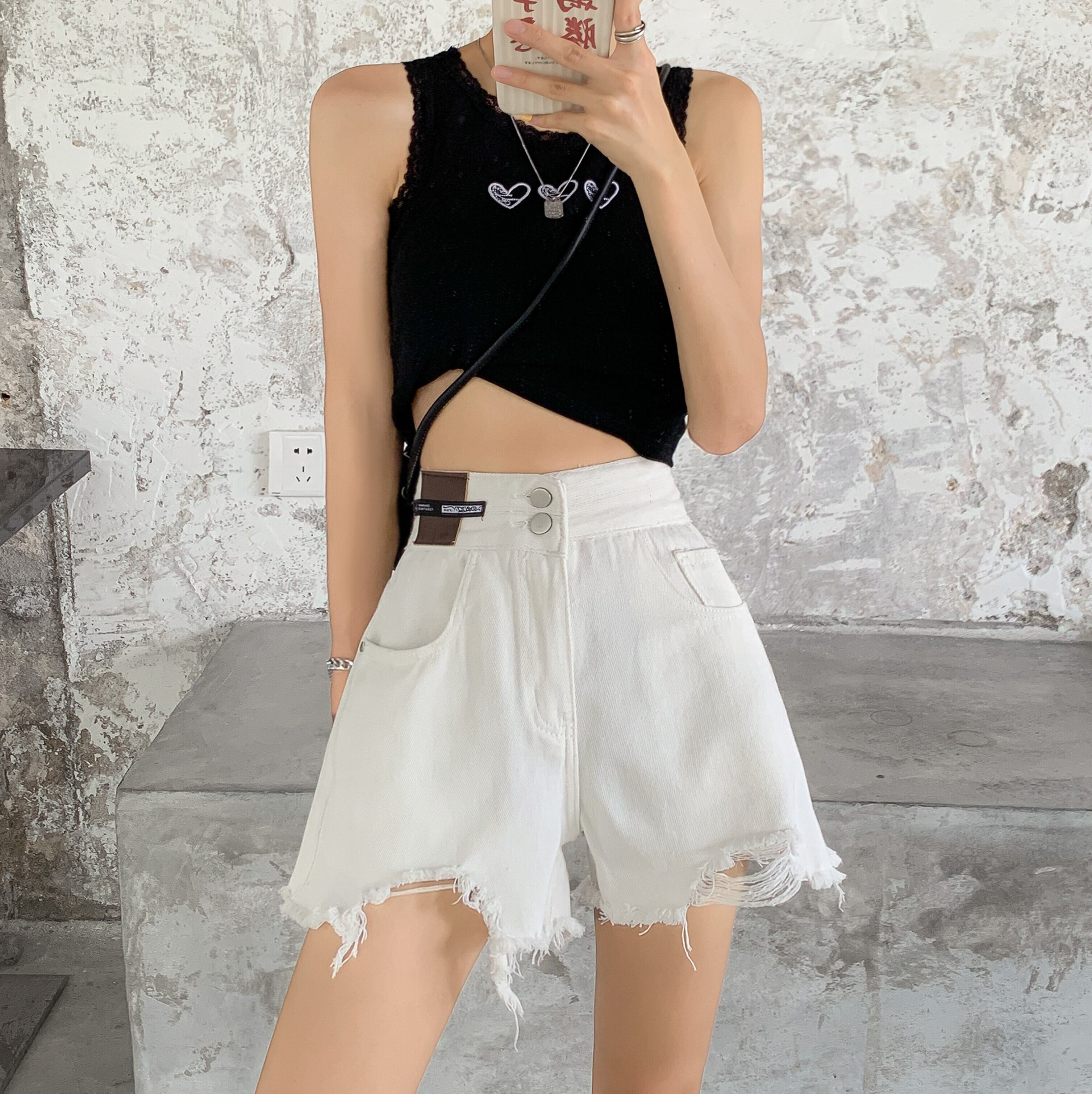 ホワイトショーツ サマー薄手ハイウェストウェストルーズワイドレッグAラインパンツ 夏物 ブルマー ワイドパンツ スーパーモール74592445437