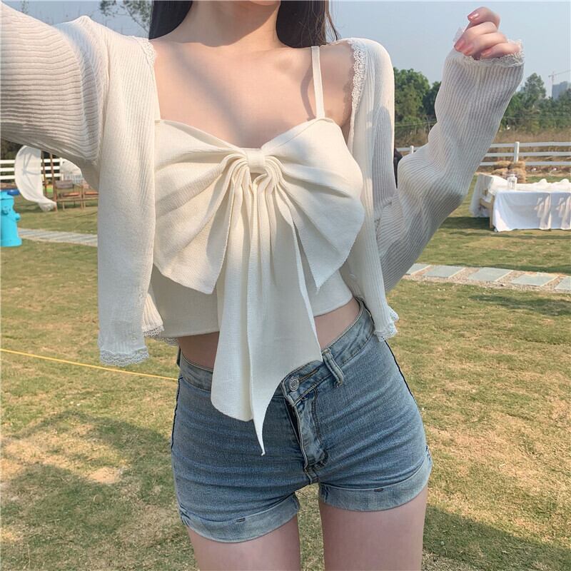 サマーレッドノースリーブトップス リボン 夏物 スーパーモール97568754125