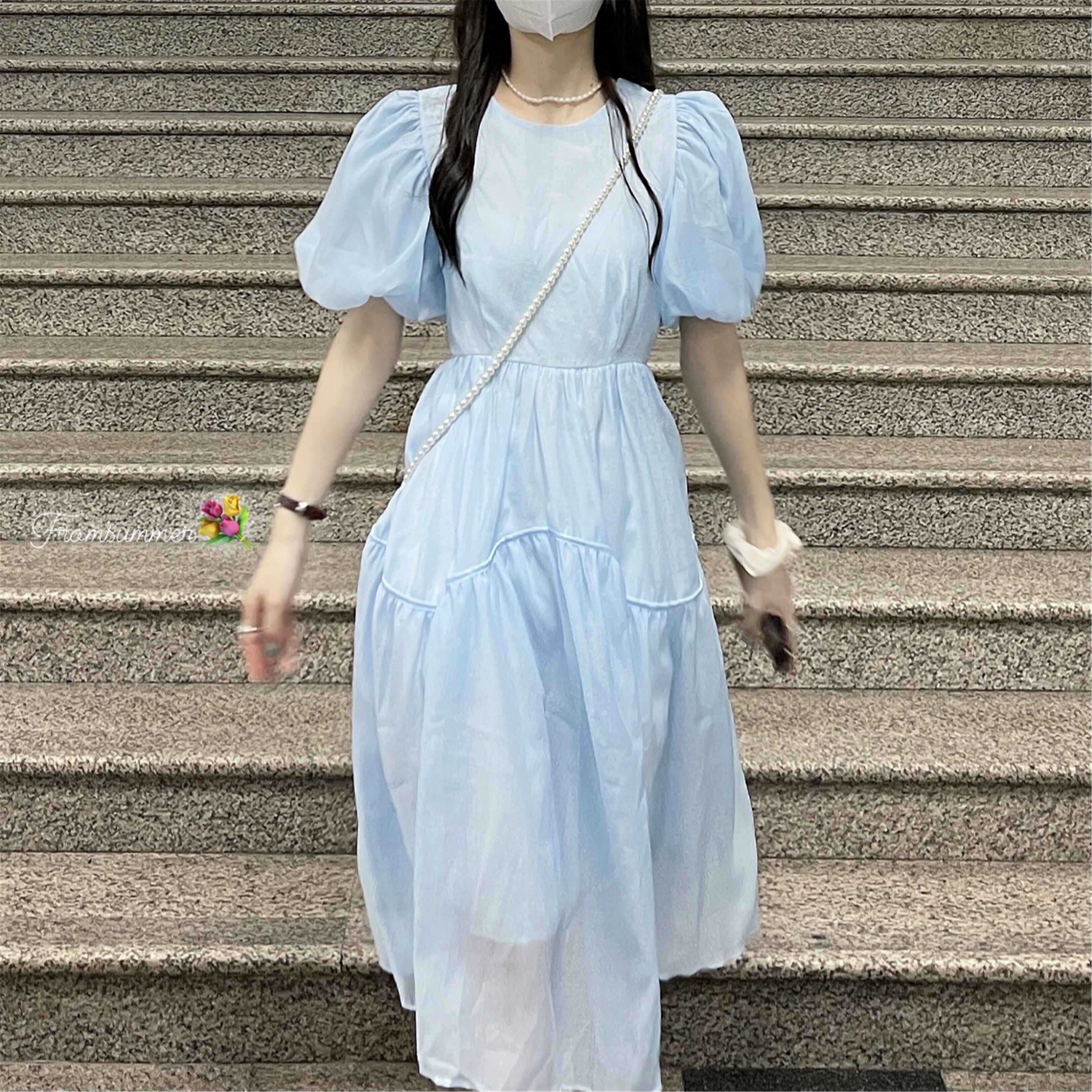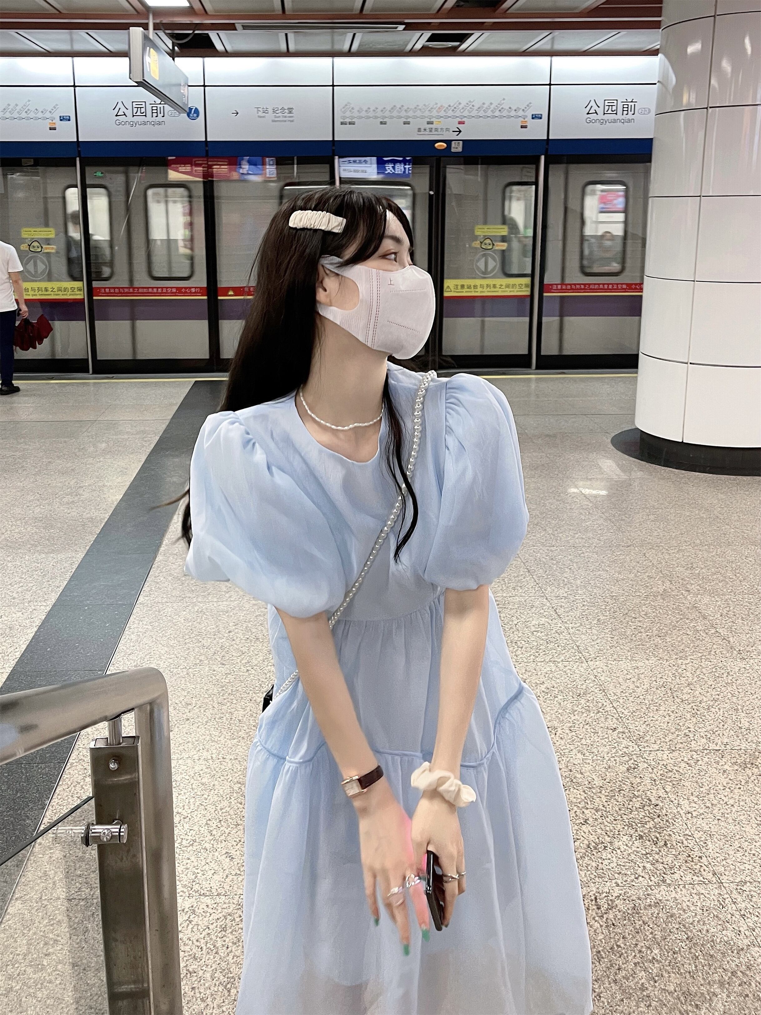 ブルースリーブドレス サマーロングスカート 夏物 スーパーモール11603897578