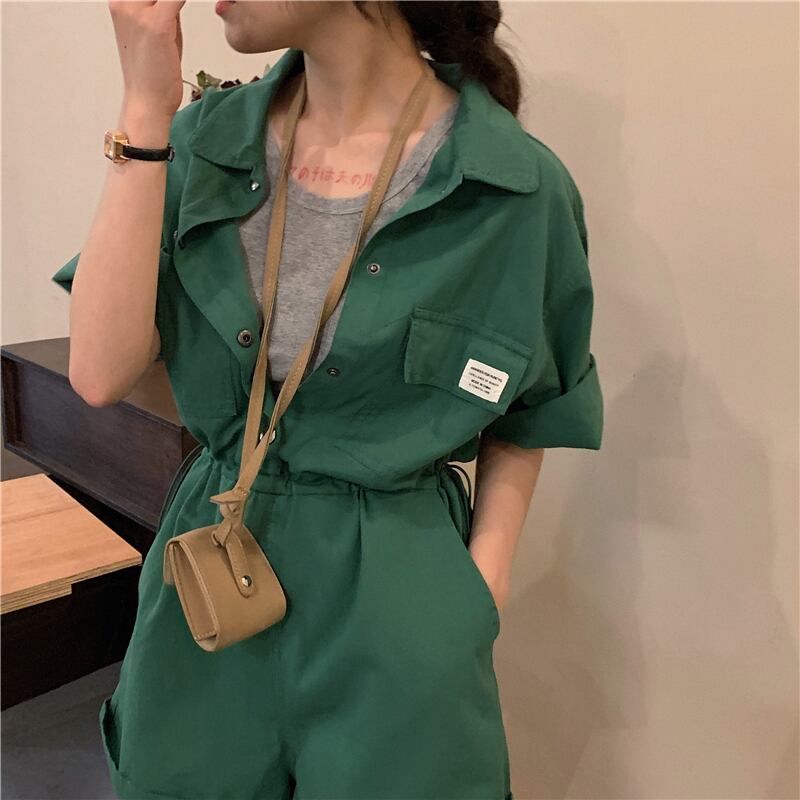 グリーンジャンプスーツ オールインワン サマー薄手ハイウェストウェストルーズワイドレッグ 夏物 ワイドパンツ スーパーモール45860951462