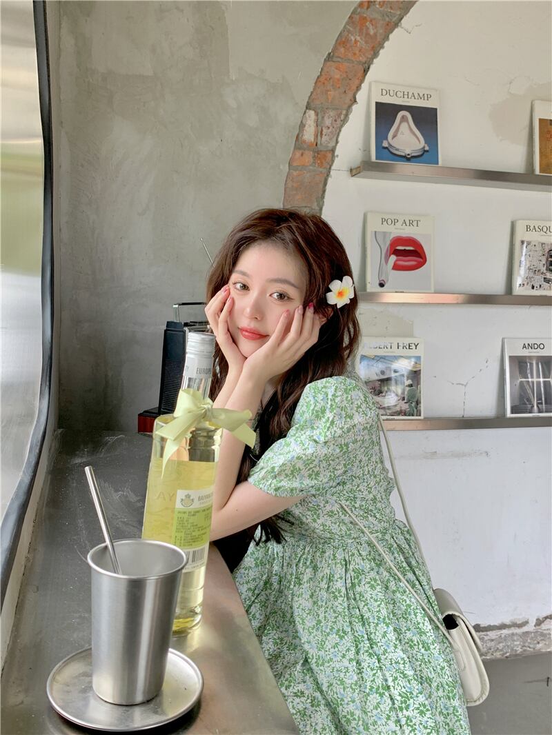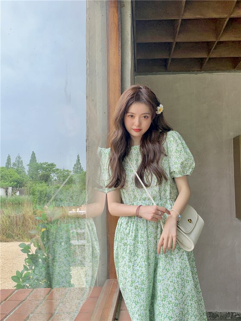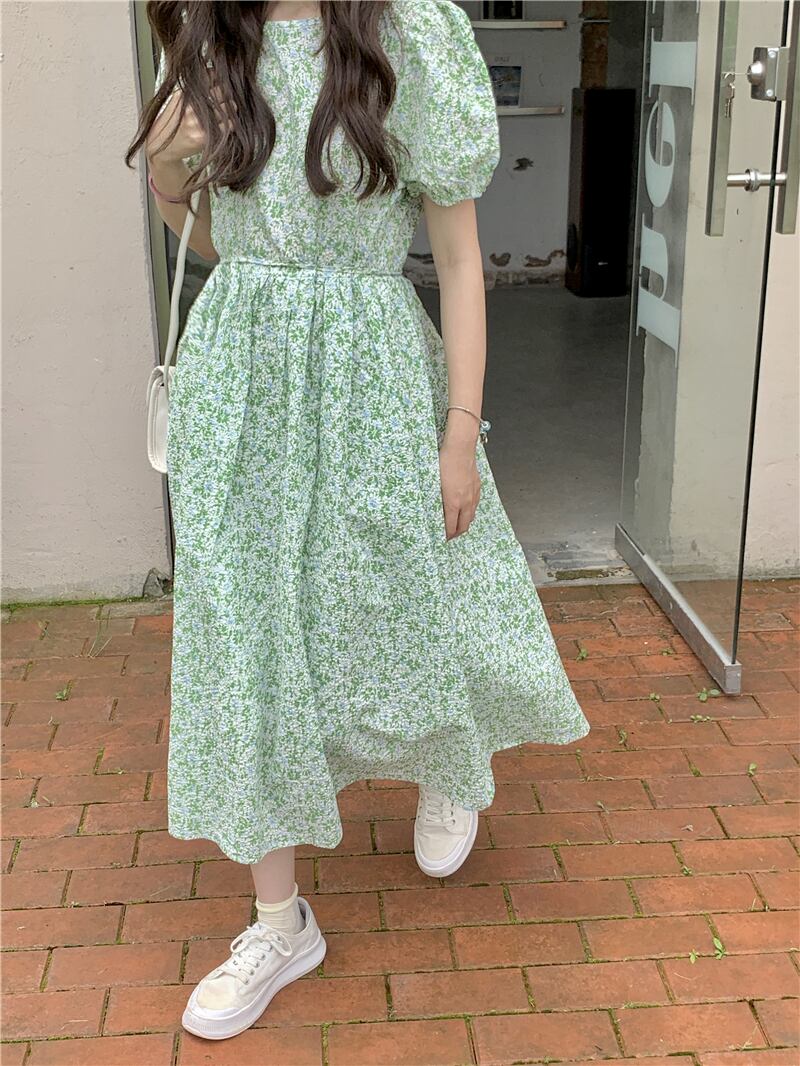 スリーブフローラルドレス サマーウェストロングスカート 夏物 花柄 スーパーモール66711803386