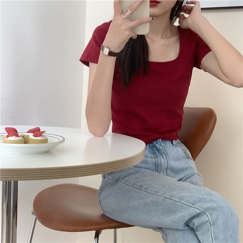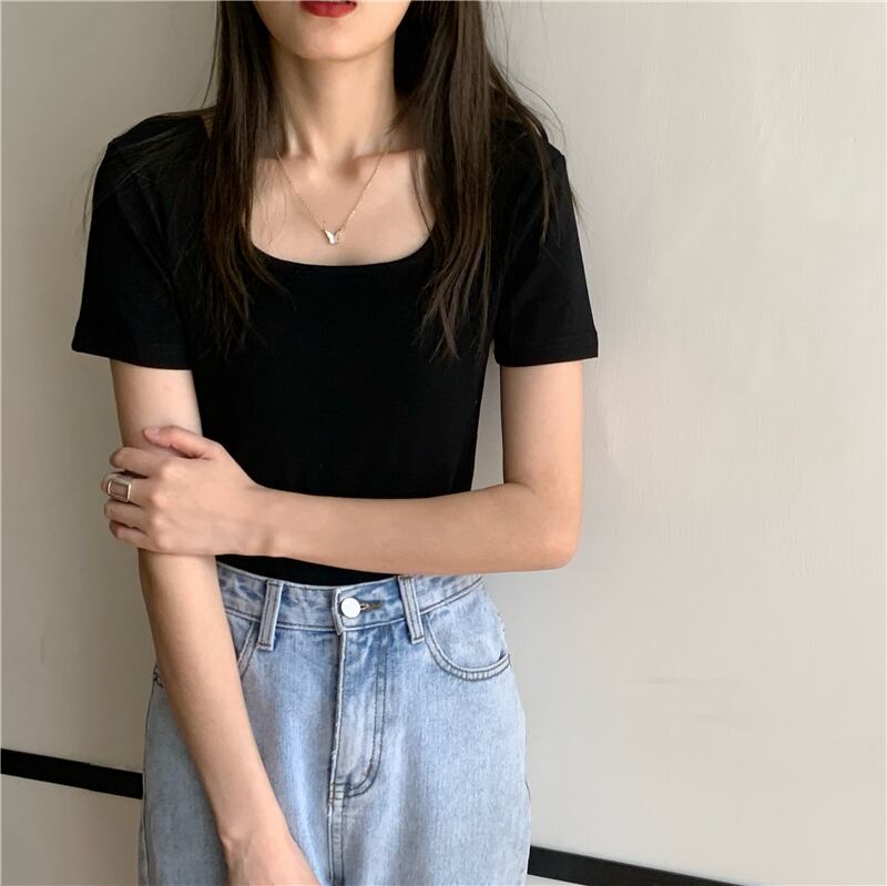ブラックショートTシャツ サマーカラートップス 夏物 スクウェア スーパーモール4909041146
