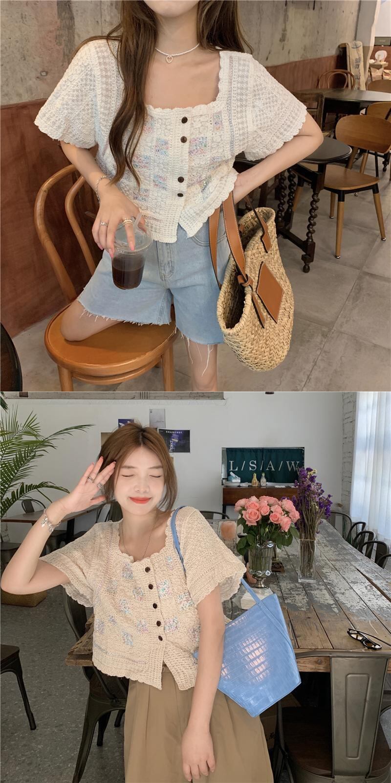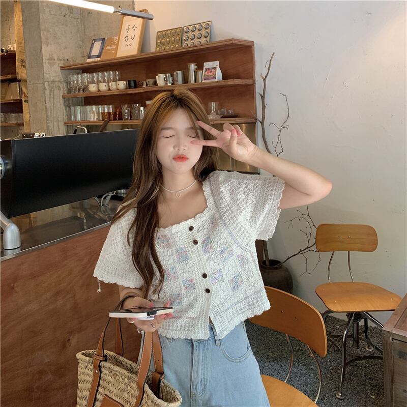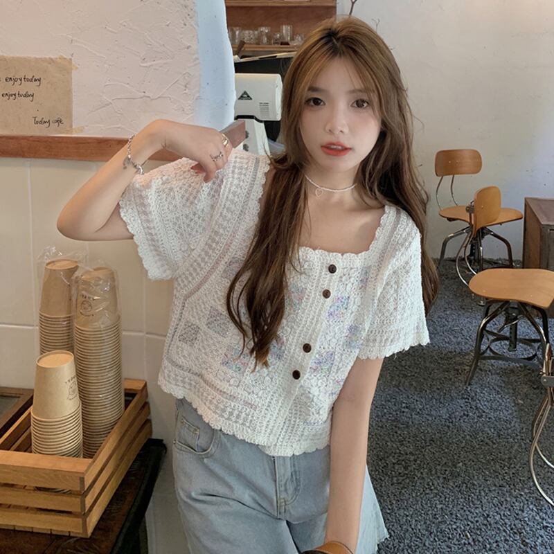 ホワイトカラーショートレースシャツ サマートップス 夏物 スクウェア スーパーモール66639018188