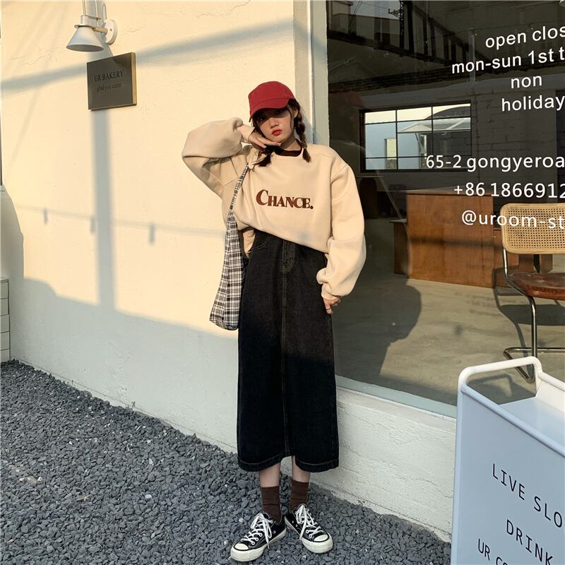 ブラックスカート スプリングオータムハイウェストウェストAライン薄手 春物 秋物 スーパーモール38982793581
