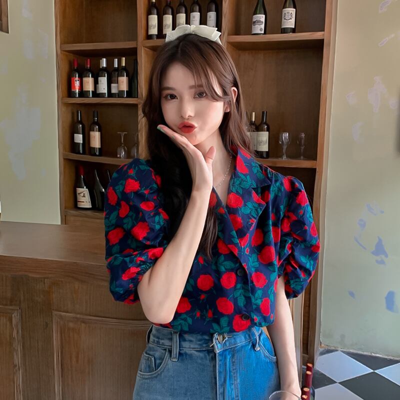 スタンダードスタイルスリーブFlowerデザイン シャツ サマー薄手トップス レトロ 夏物 フラワーデザイン スーパーモール84157963368