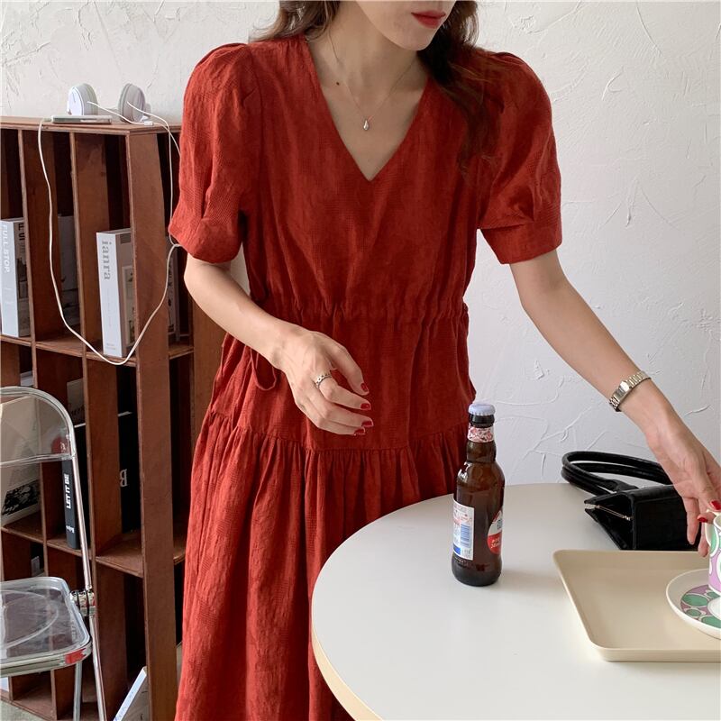 Vネックドレス サマーウェストロングスカート 夏物 スーパーモール95564872878