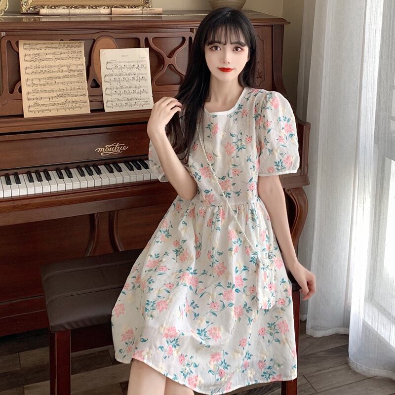 スリーブフローラルドレス サマースカート 大人ガーリー スウィート キュート カジュアル 夏物 花柄 スーパーモール34935229734