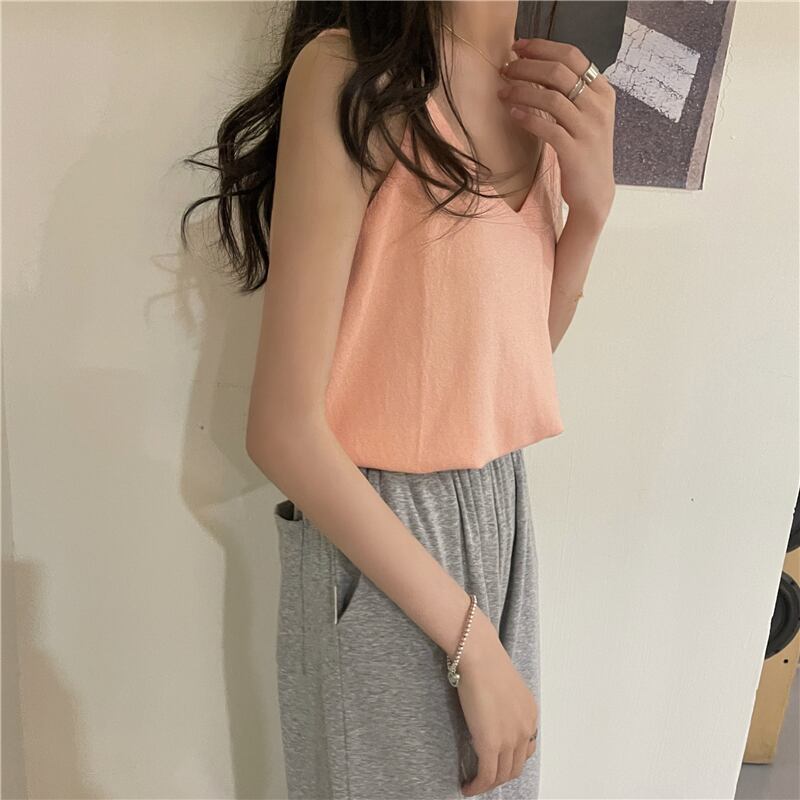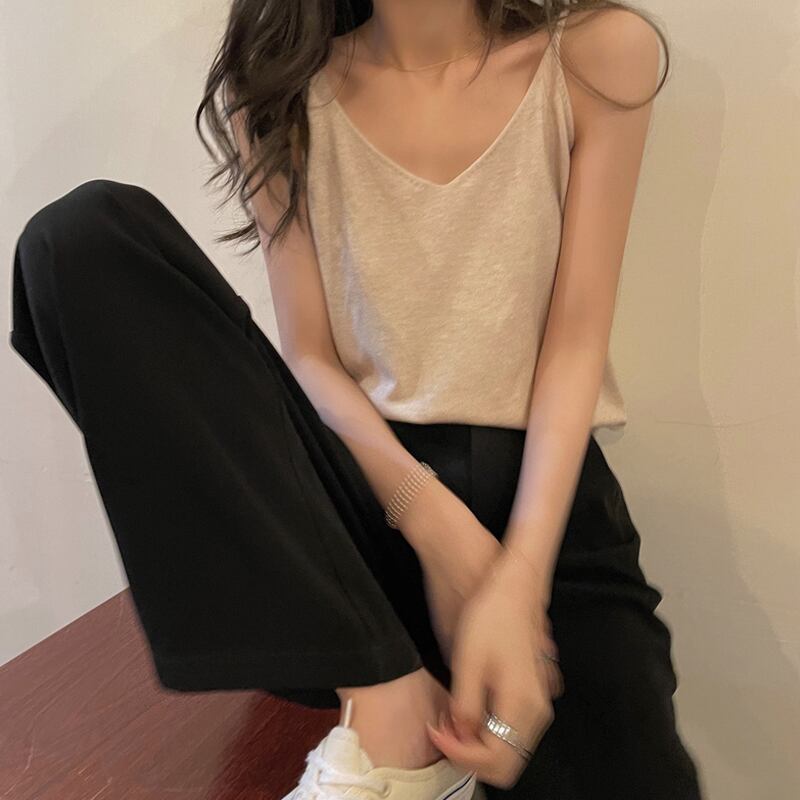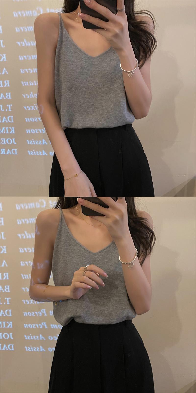 ブラックニットVネックレディースサマートップス ノースリーブ 夏物 スーパーモール80508424305