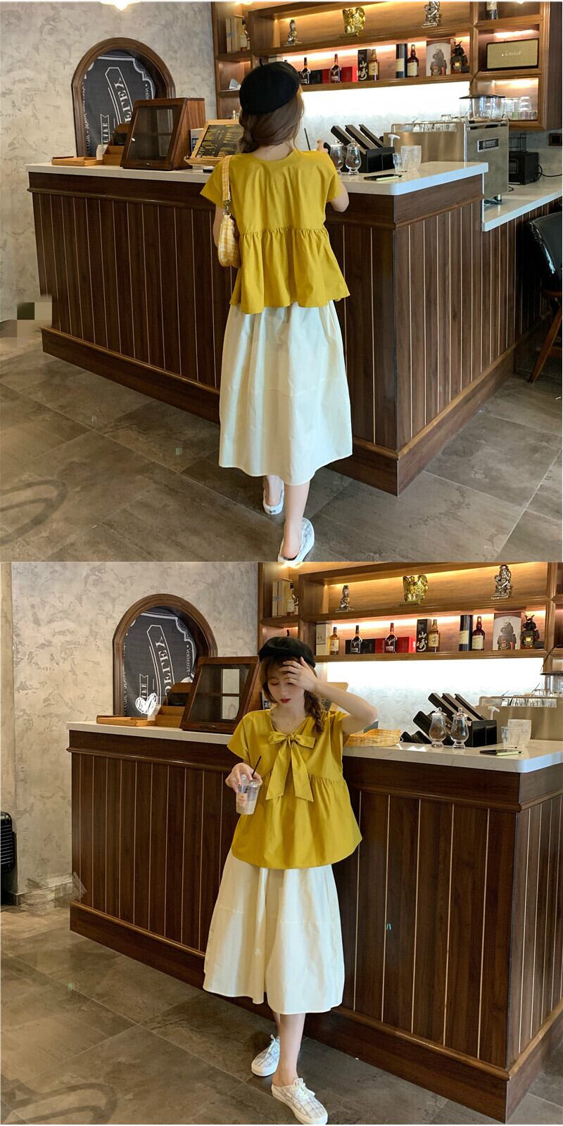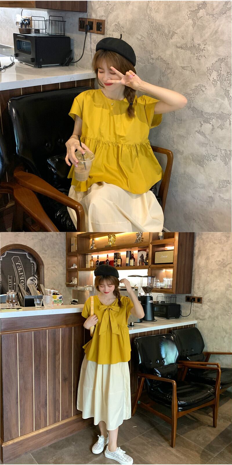 色:黄色のシャツワンピース,ブルートップシングルピース,ホワイトトップシングルピース,ワンピースアプリコットスカート,白いスカートワンピース,黒スカートワンピース
