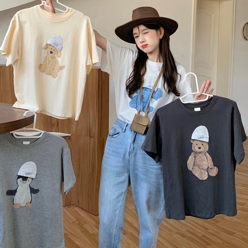 ホワイトTシャツ サマーレッドルーズ薄手トップス 夏物 スーパーモール46360975911