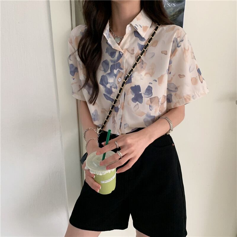 スタンダードシャツ シフォンサマートップス レトロ 夏物 スーパーモール92645680471