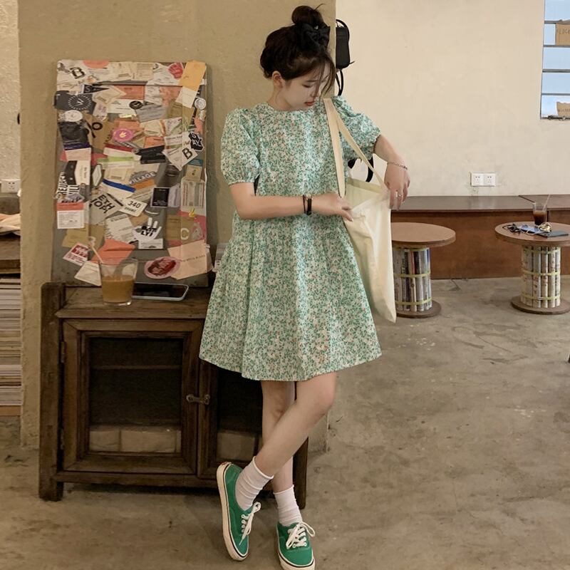 フローラルスリーブドレス サマースカート 大人ガーリー スウィート キュート カジュアル 夏物 花柄 スーパーモール80359951378