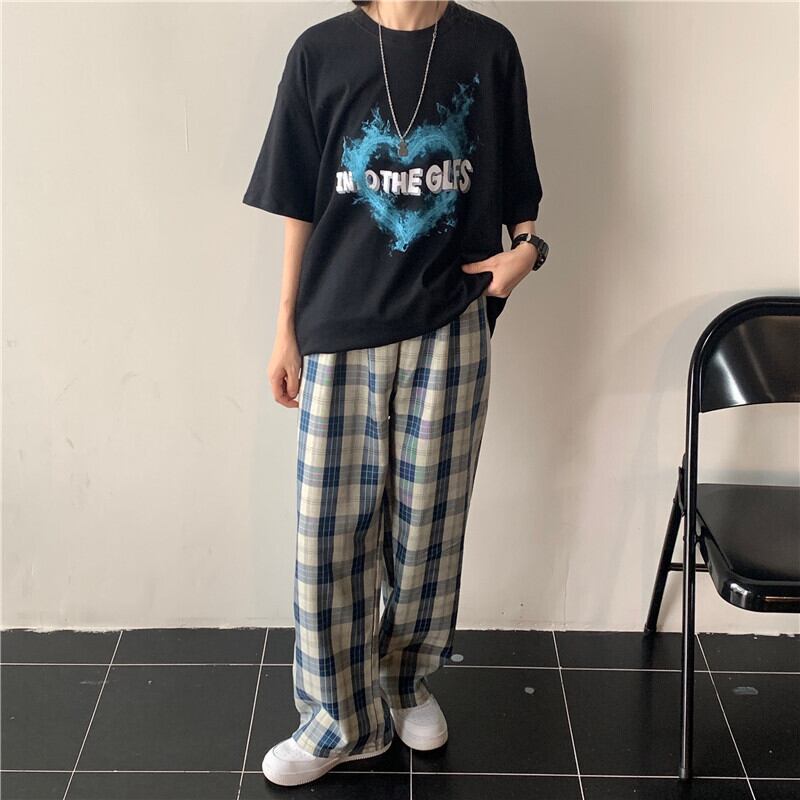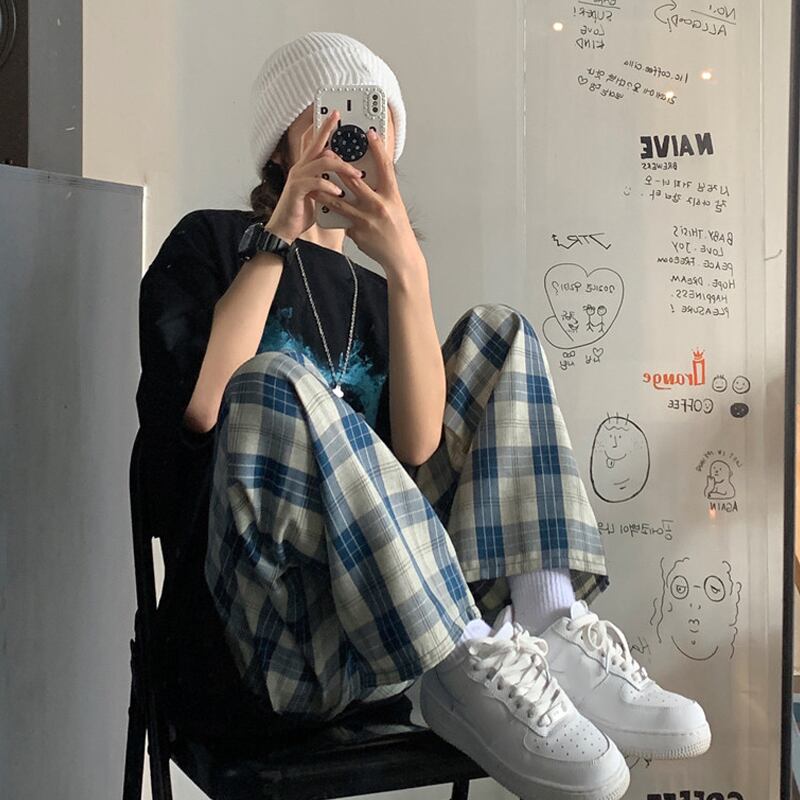 格子柄パンツ サマー薄手ハイウェストウェストスリムルーズカジュアル 夏物 スーパーモール37201559841