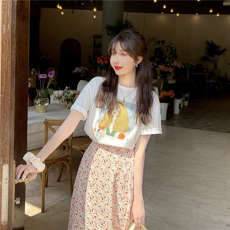 ヤーンレディースサマー半袖スリーブトップス フローラルスカート セット ショート ハーフスリーブ 大人ガーリー スウィート キュート カジュアル 夏物 花柄 スーパーモール9344152344