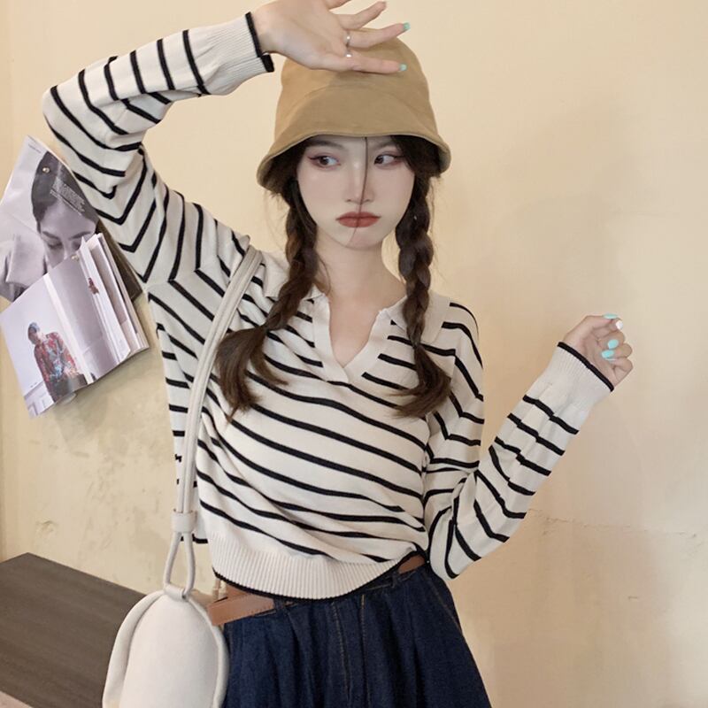 カラーストライプセーター スプリングオータムレッド薄手トップス ロング 春物 秋物 スーパーモール80103892422