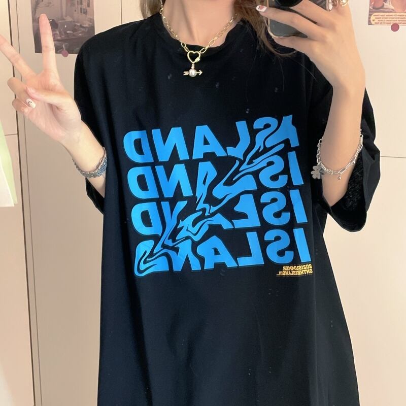 ブラックTシャツ サマーレッドスタイルルーズ 夏物 スーパーモール38491179350