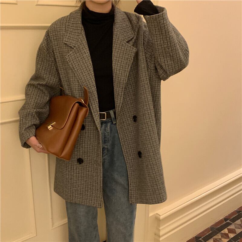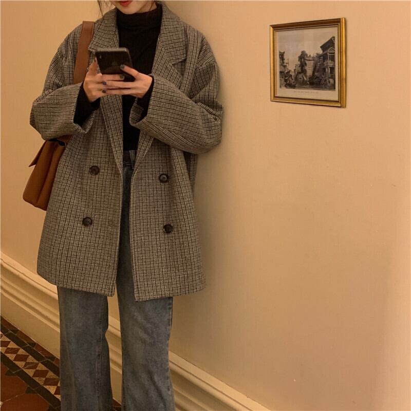 格子柄ジャケット スプリングオータムスタイルスタンダードカジュアル レトロ 春物 秋物 スーパーモール47895857984