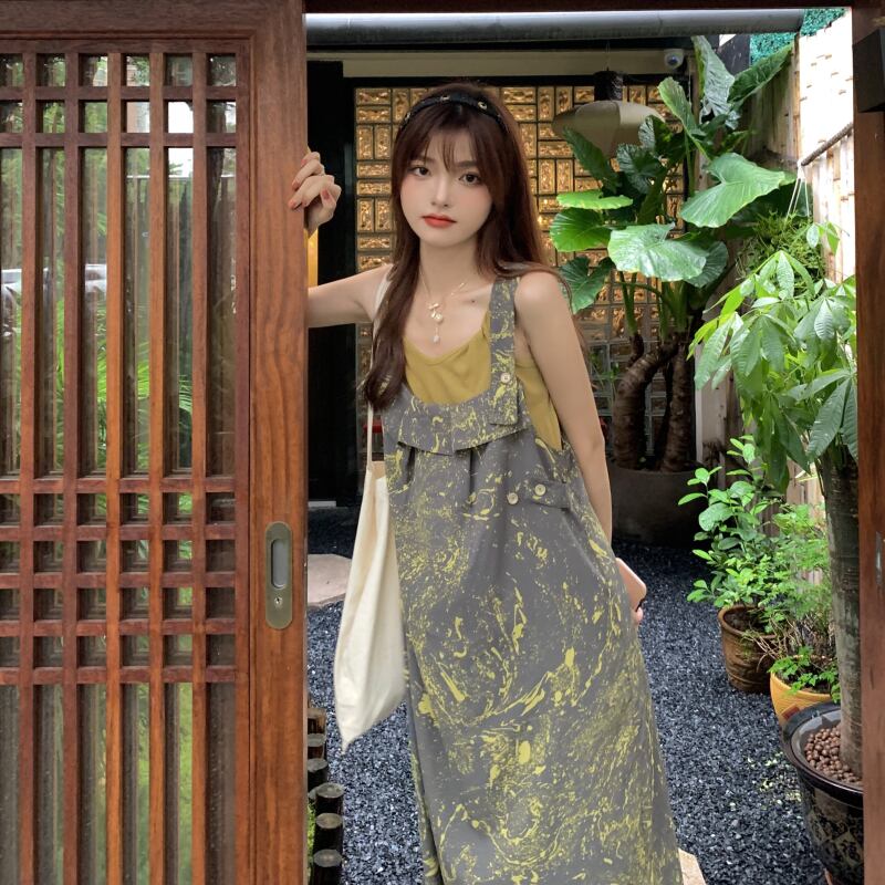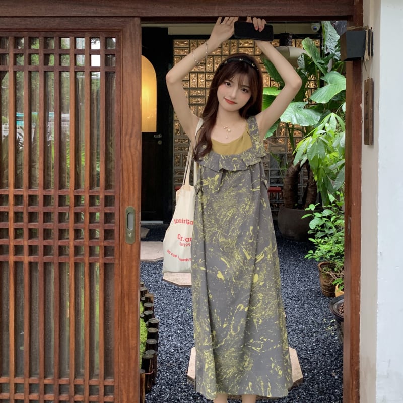 グリーンスタンダードドレス サマーロングスカート レトロ 夏物 スーパーモール29832447442