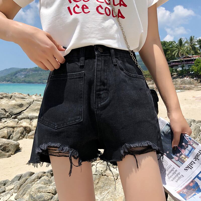 ルーズパンツ サマーブラックジーンズ ハイウェストショーツ 夏物 ブルマー スーパーモール9475175868