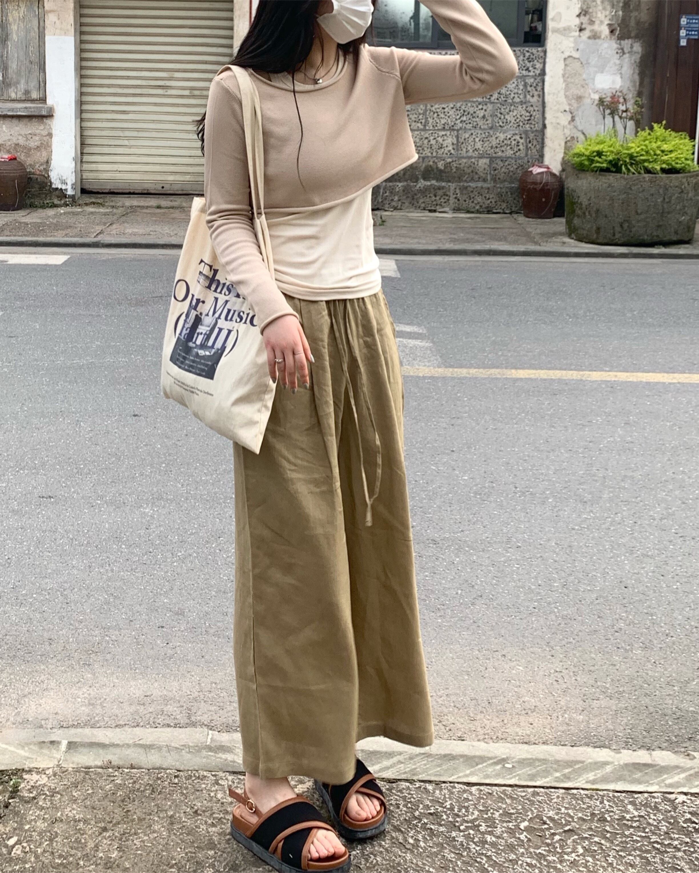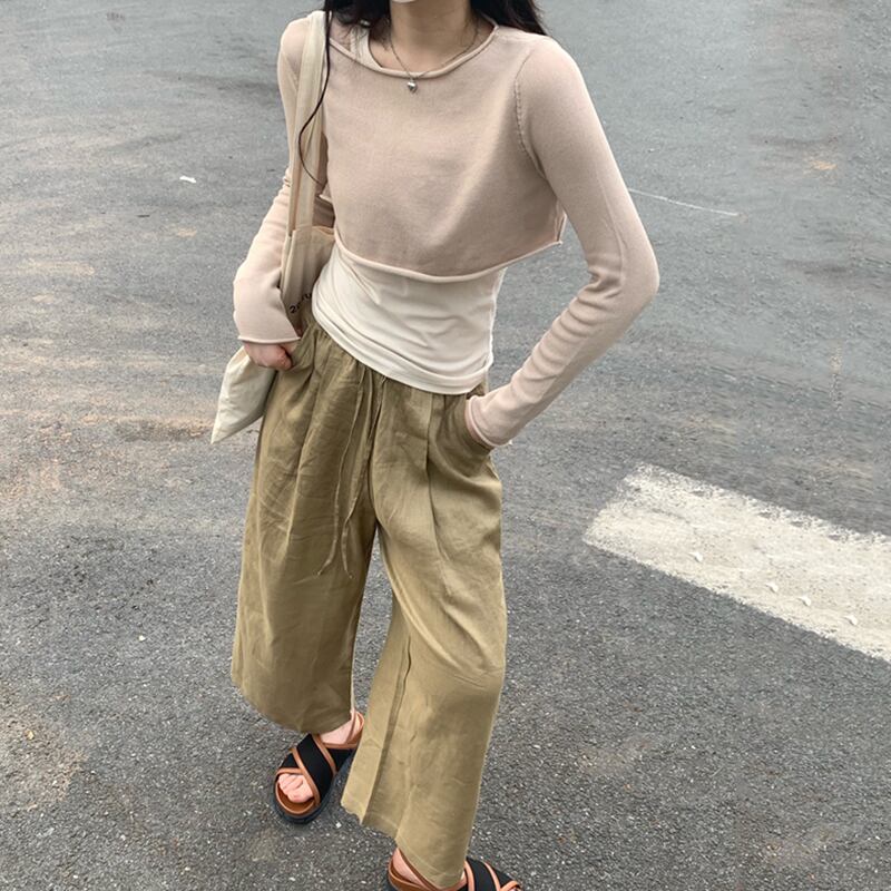 カーキカジュアルパンツ サマー薄手ハイウェストウェストルーズ 夏物 スーパーモール26994505809