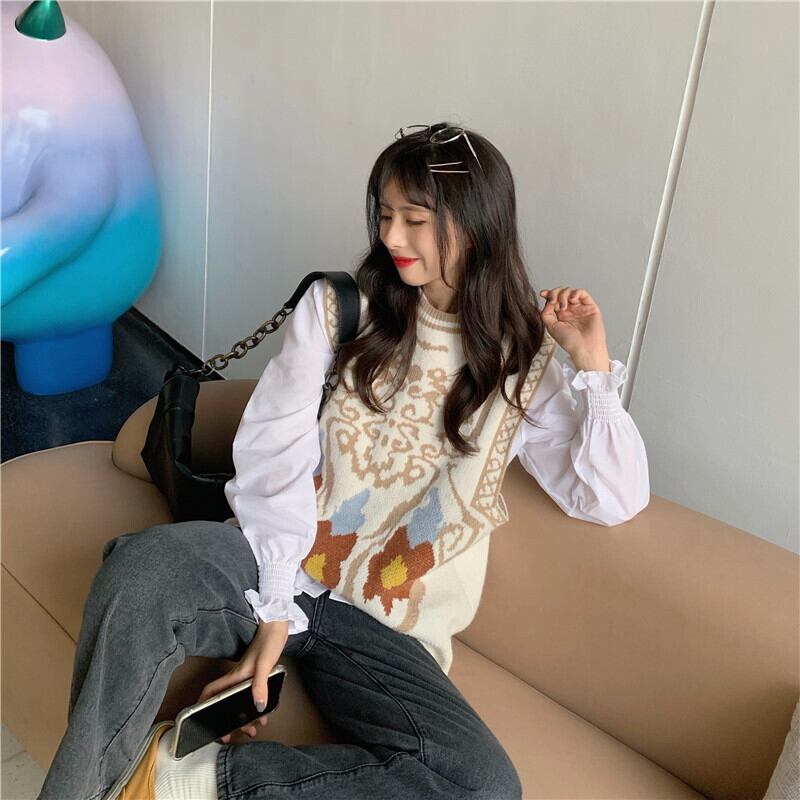 色:白いシャツ+アプリコットベスト,白いシャツ+ネイビーブルーのベスト