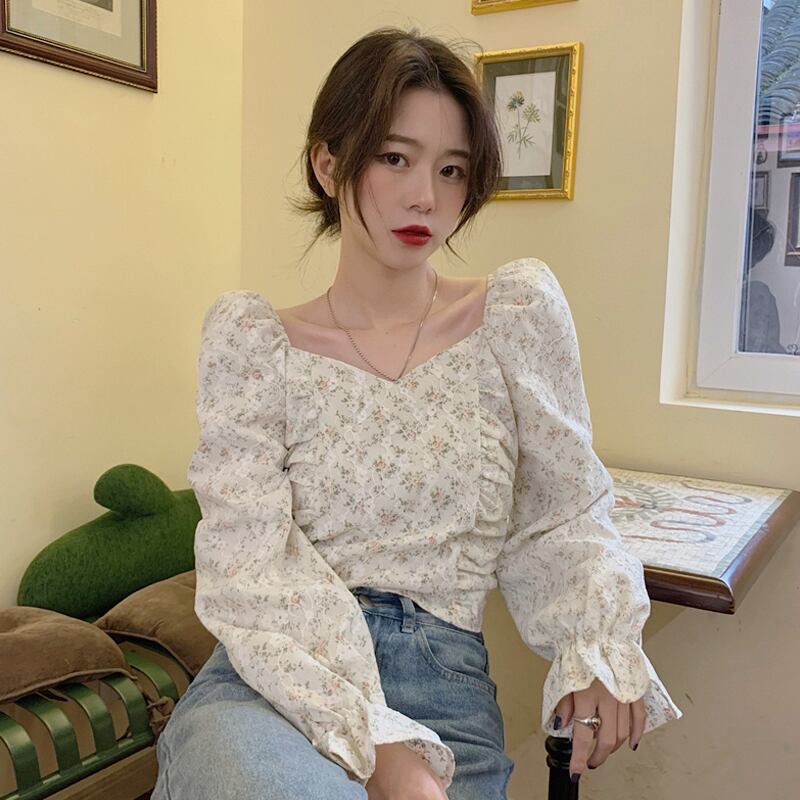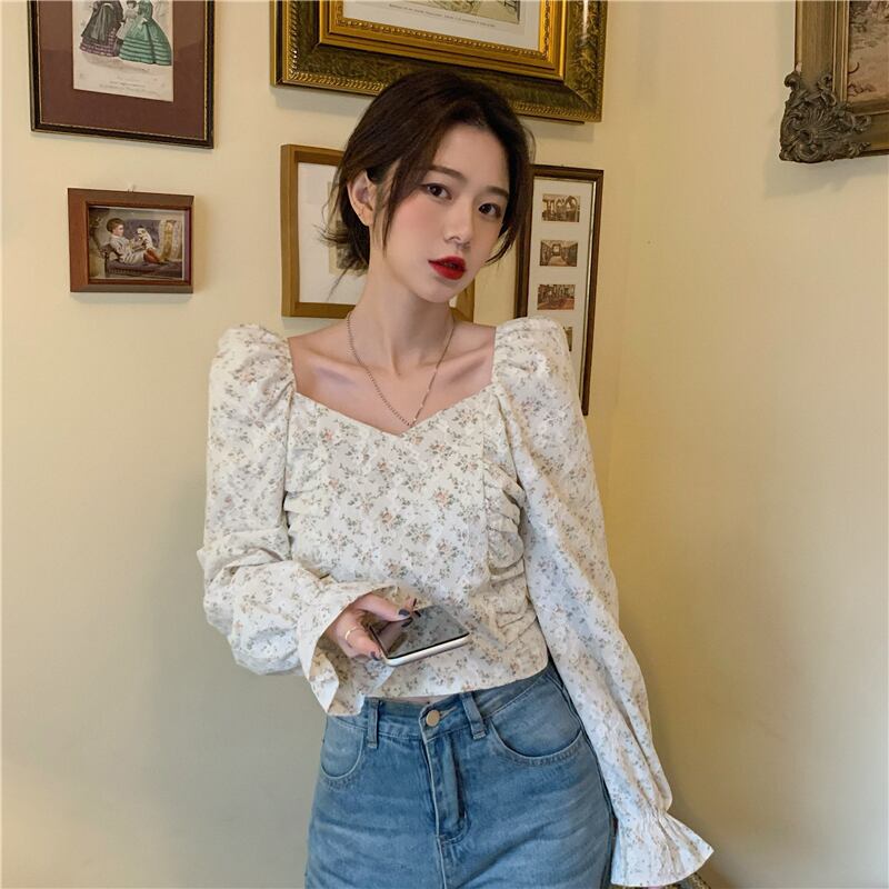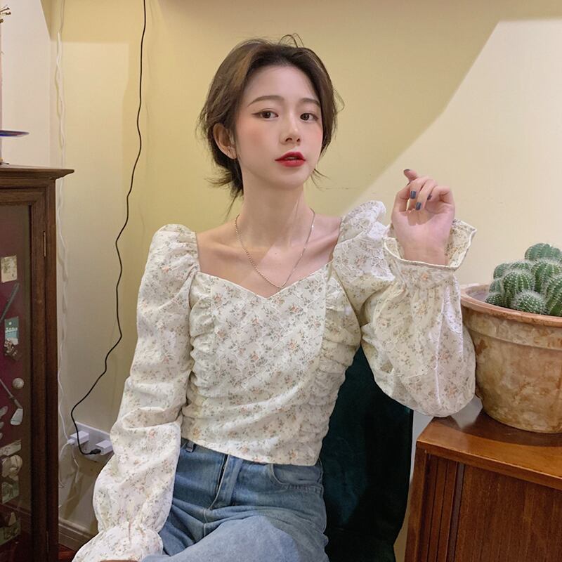 ショートトップス スプリングオータムスリーブフローラルシャツ 春物 秋物 花柄 スーパーモール9753105985
