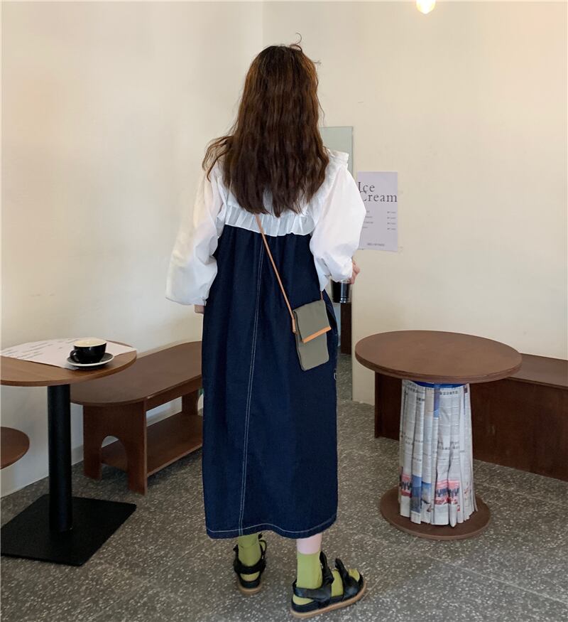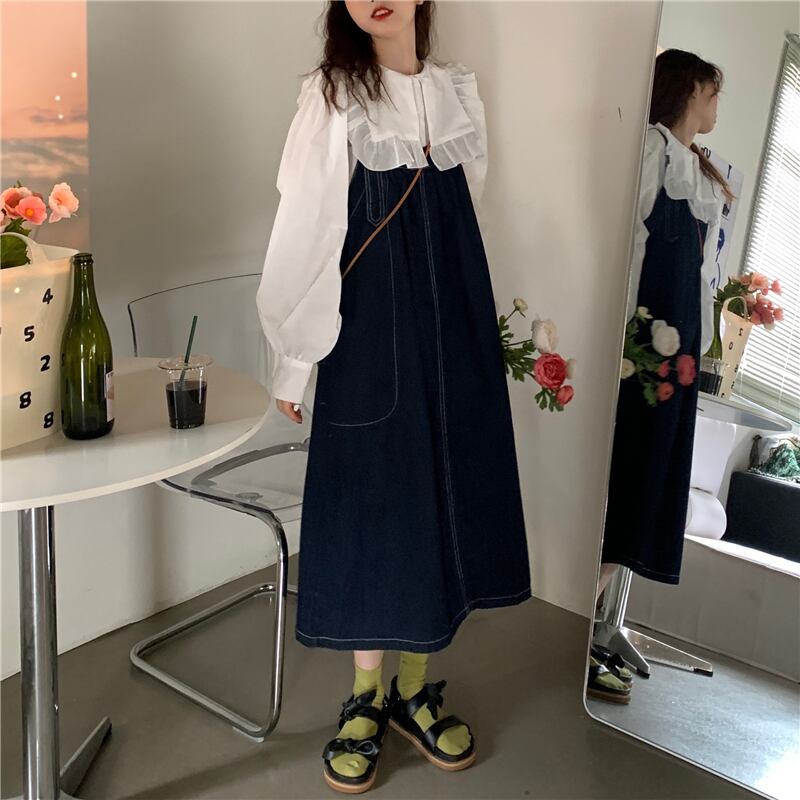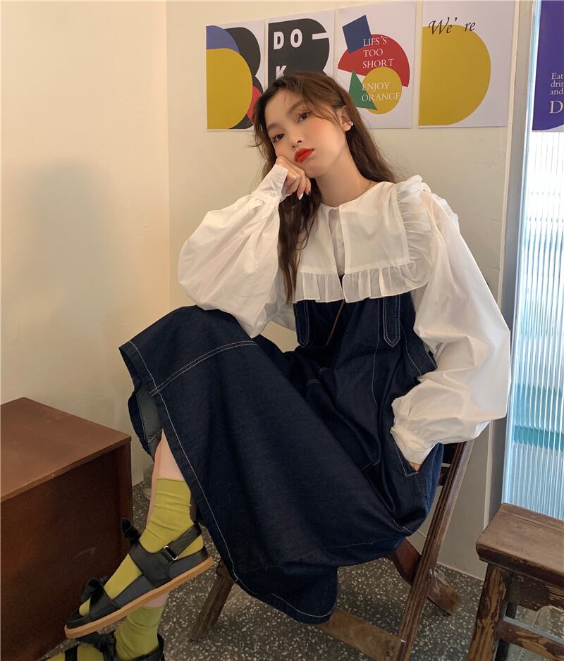 色:デニムサスペンダースカートワンピース,シャツ一枚
