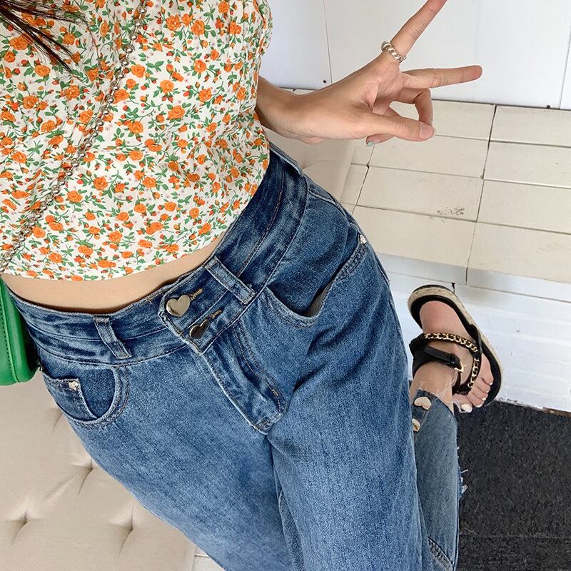 スタンダードスリットクロップドジーンズ スプリングオータムルーズパンツ レトロ 春物 秋物 スーパーモール40169584993
