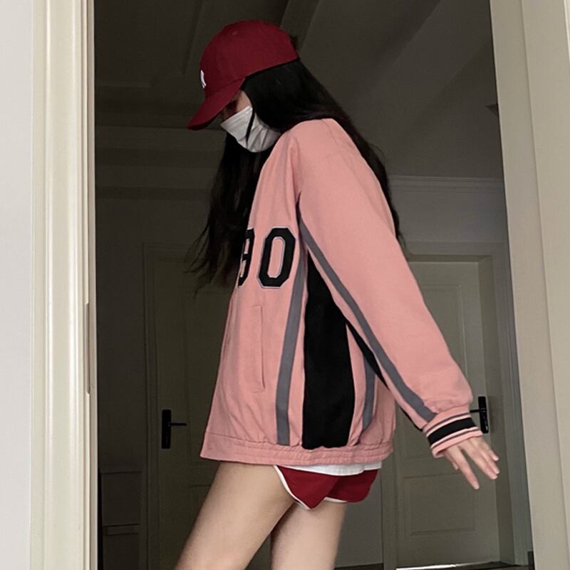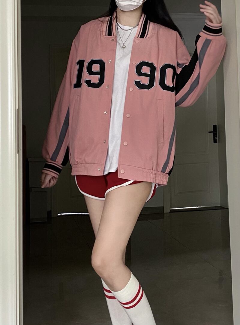 刺繍ジャケット スプリングオータムスタンダードルーズトップス ピンク レトロ 春物 秋物 スーパーモール43476259531
