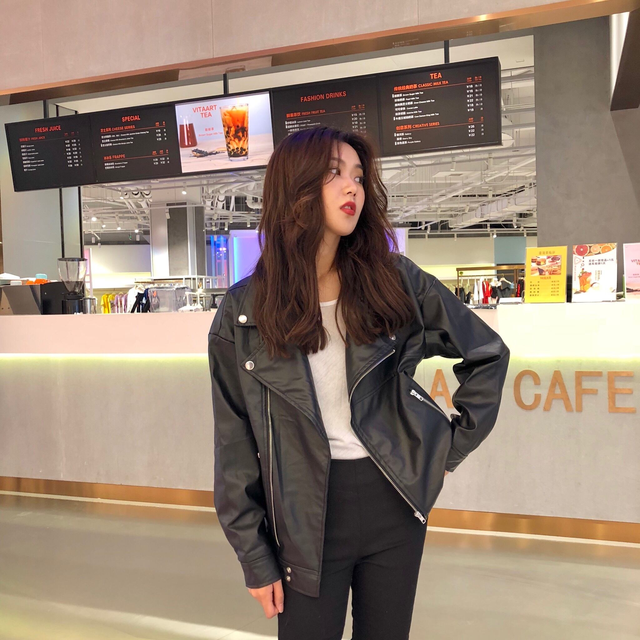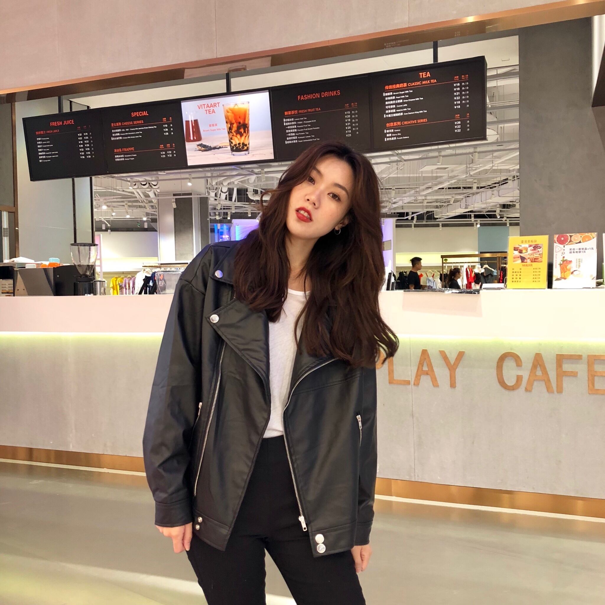 ブラックレザージャケット スプリングオータムスタイルトップス 春物 秋物 スーパーモール77951327751