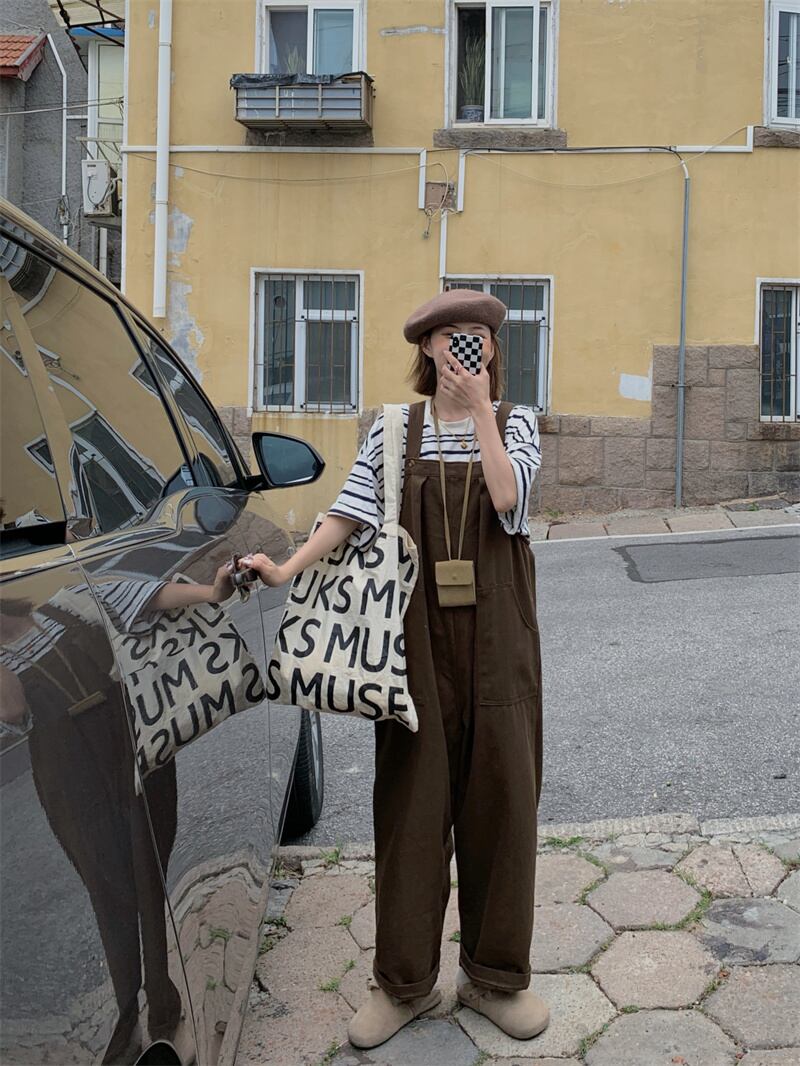 色:ブラックパンツワンピース,カーキ色のパンツ,ホワイトTシャツシングルピース