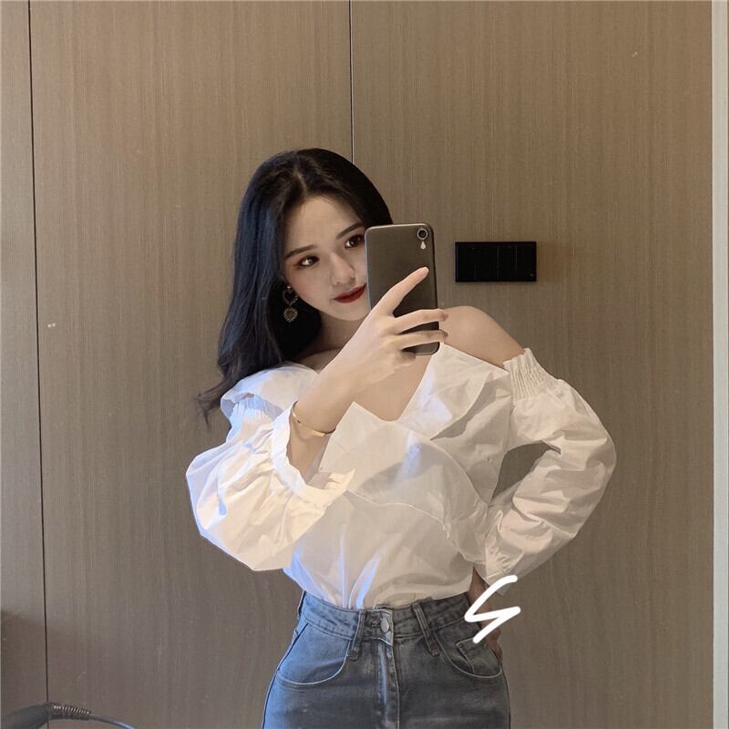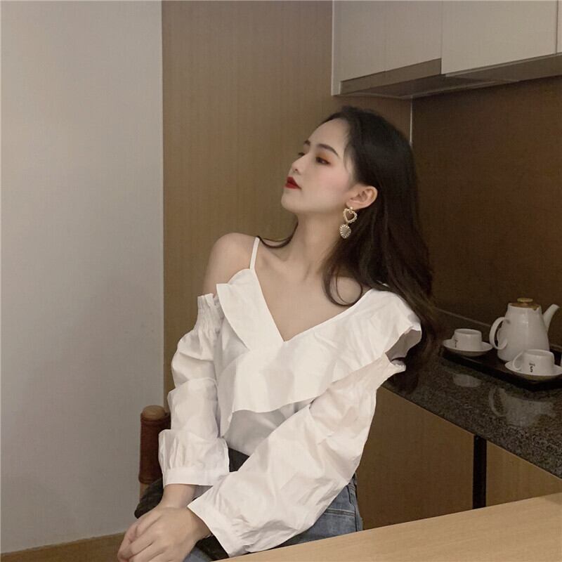 ブラウス スプリングオータムスタイルレースストラップレスホワイトシャツ レディース 春物 秋物 スーパーモール84053941490