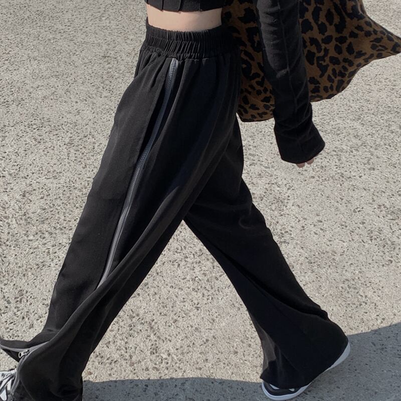 ブラックカジュアルパンツ サマー薄手ハイウェストウェストワイドレッグスプリングオータムルーズ 春物 夏物 秋物 ワイドパンツ スーパーモール38738386383