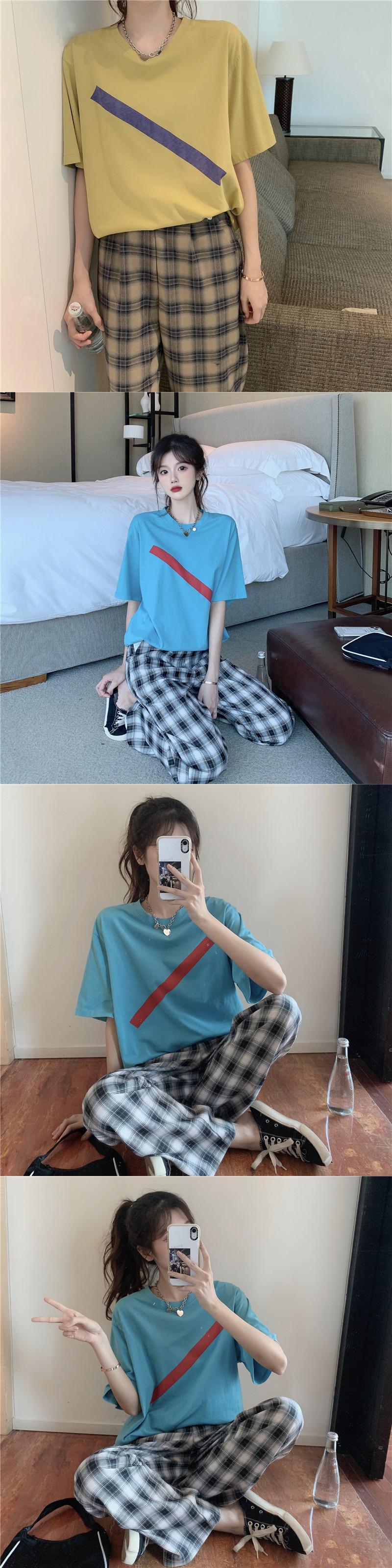 色:パープル半袖ワンピース,ブルー半袖ワンピース,緑の半袖ワンピース,ピンク半袖ワンピース,黒と白のチェックパンツワンピース,シングルチェック柄パンツ