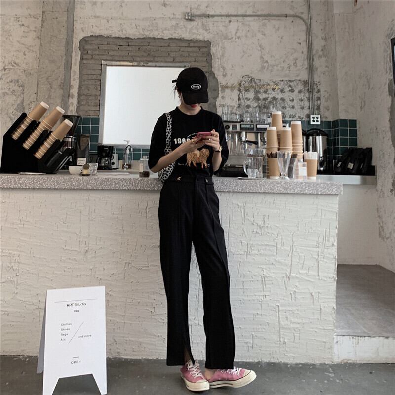 ハイウェストカジュアルパンツ 薄手ルーズサマー 夏物 スーパーモール20065370184