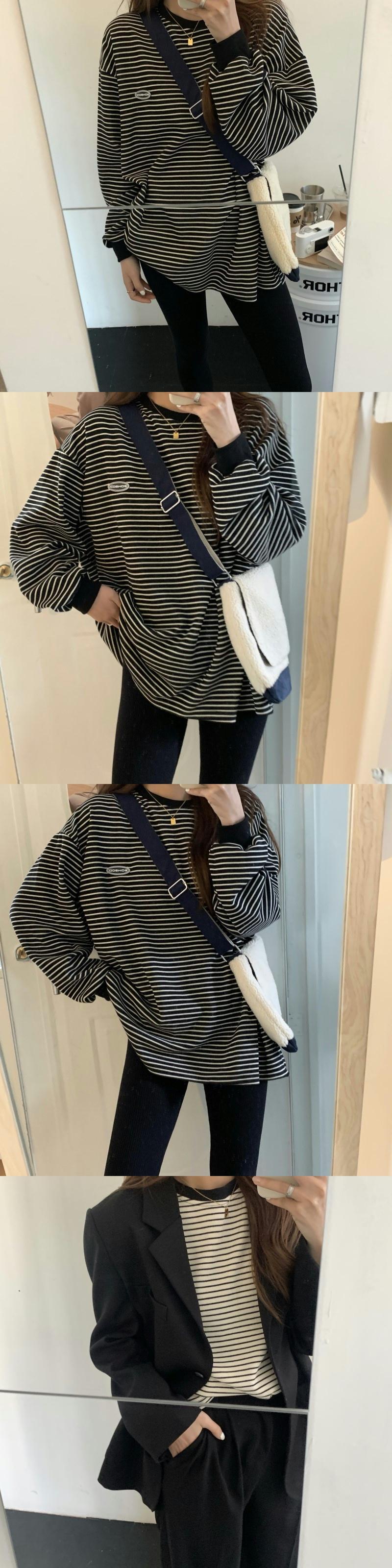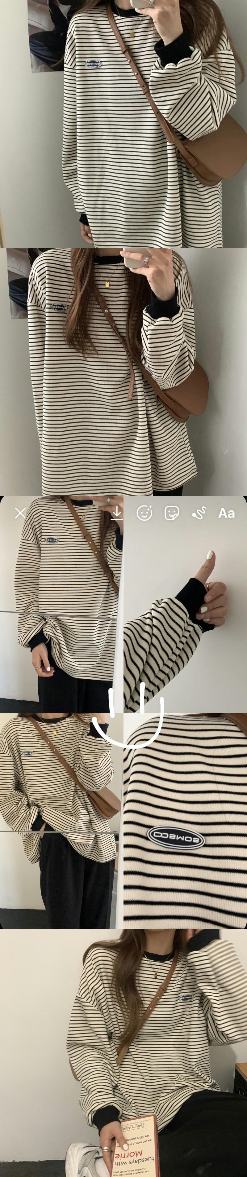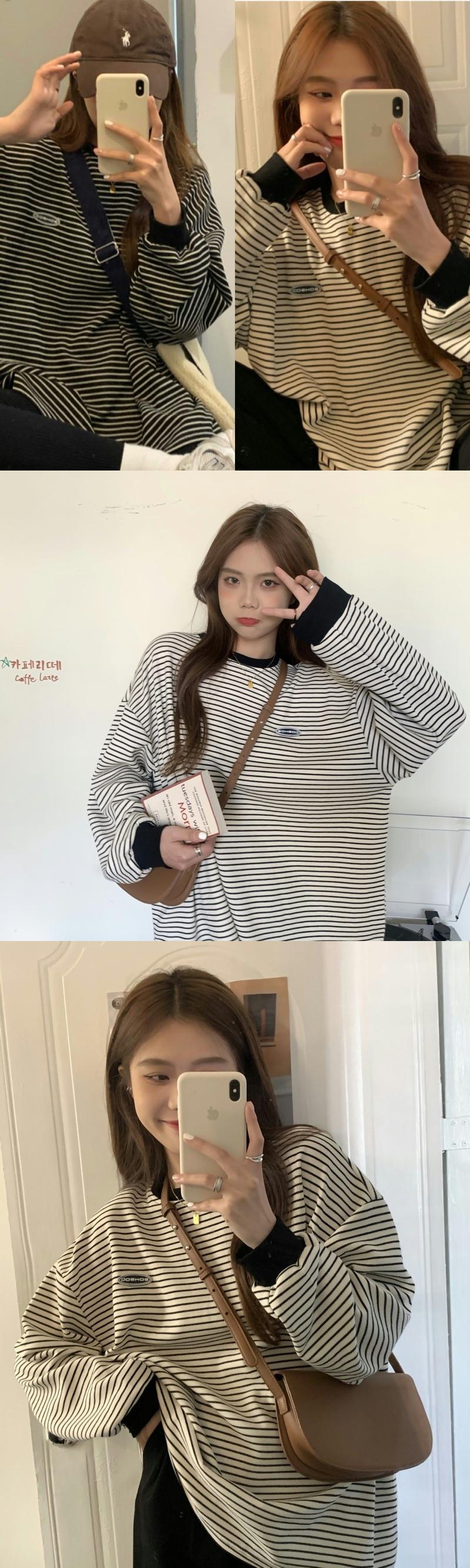 スタイルストライプTシャツ スプリングオータムルーズトップス ロング 春物 秋物 スーパーモール46927683935