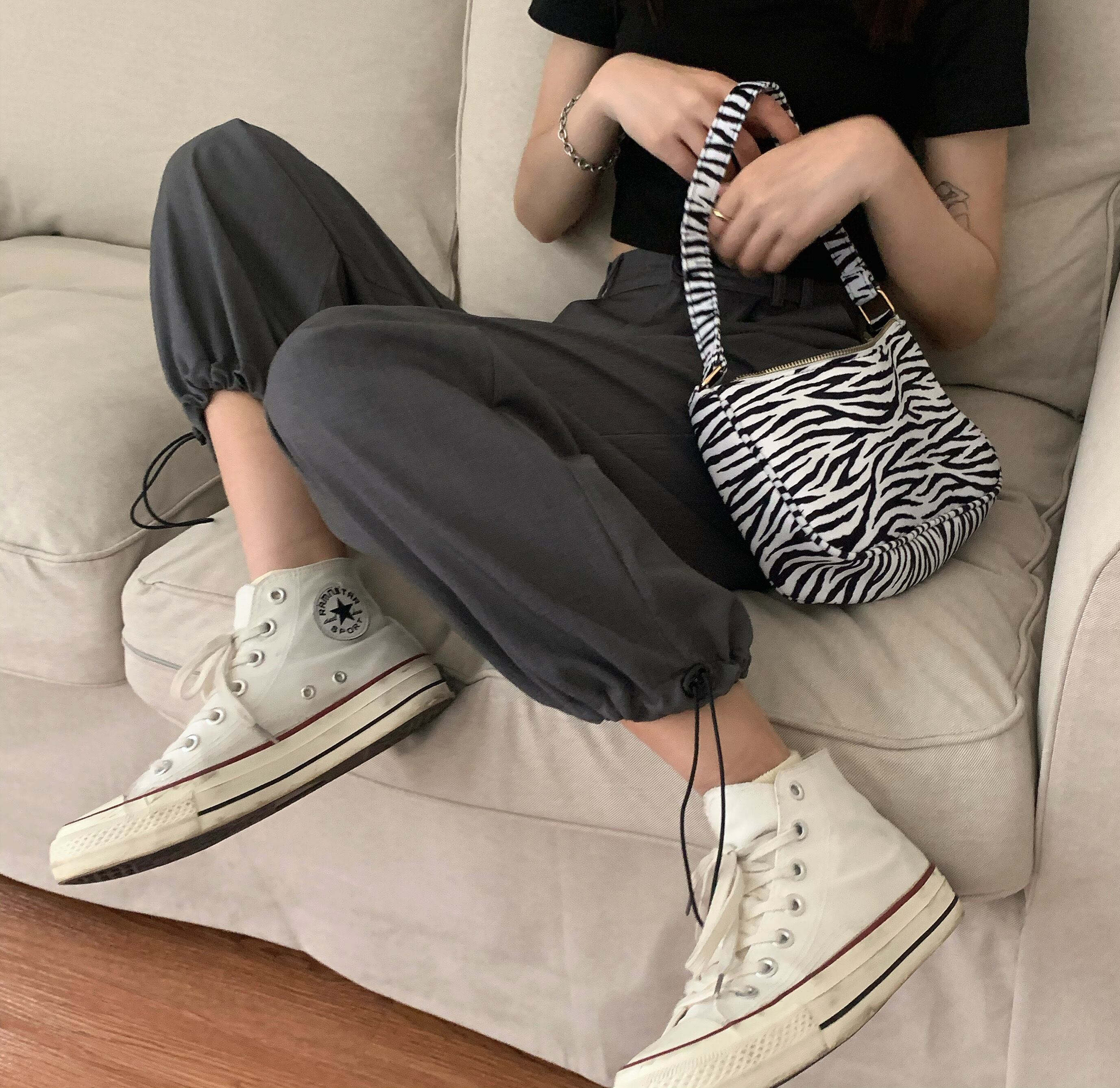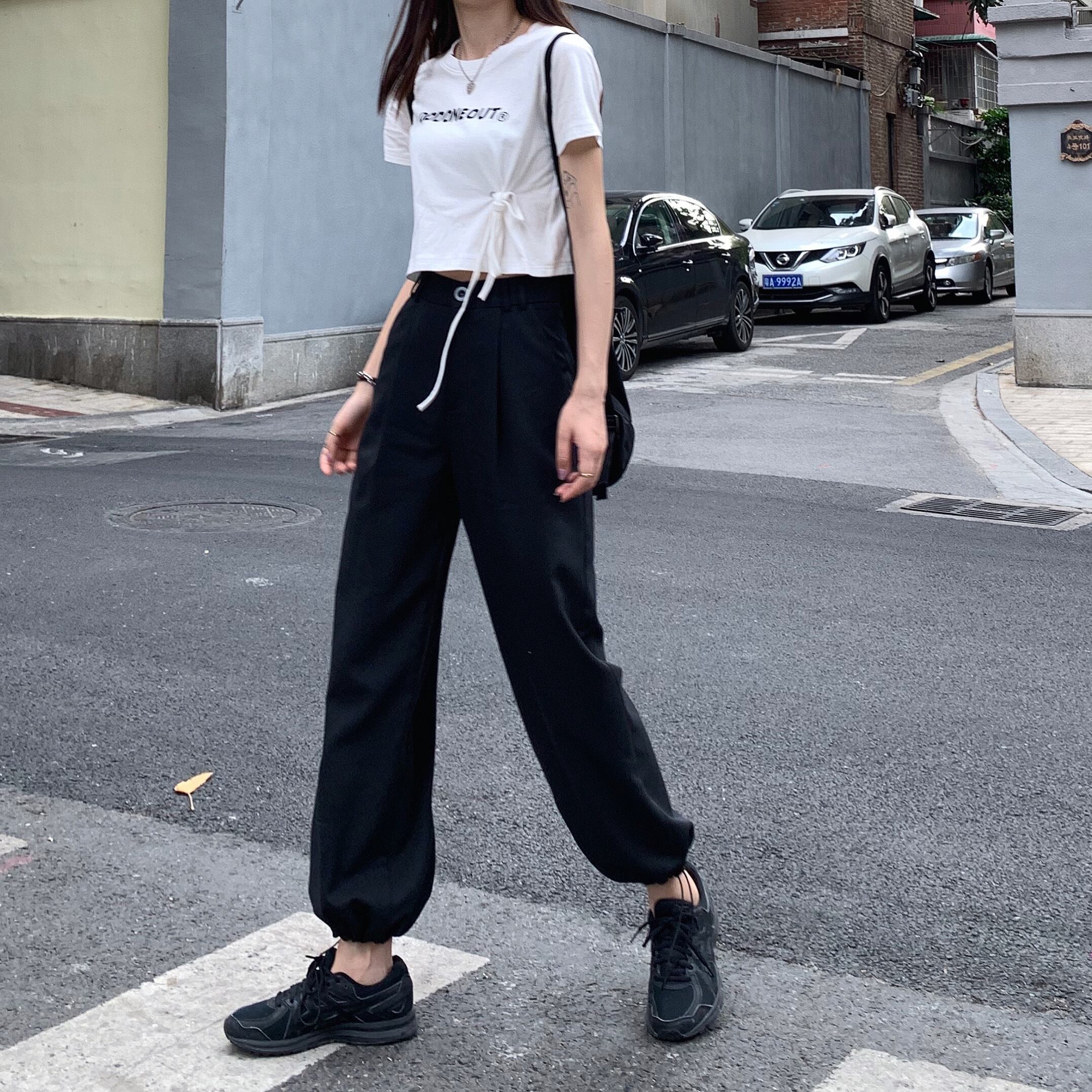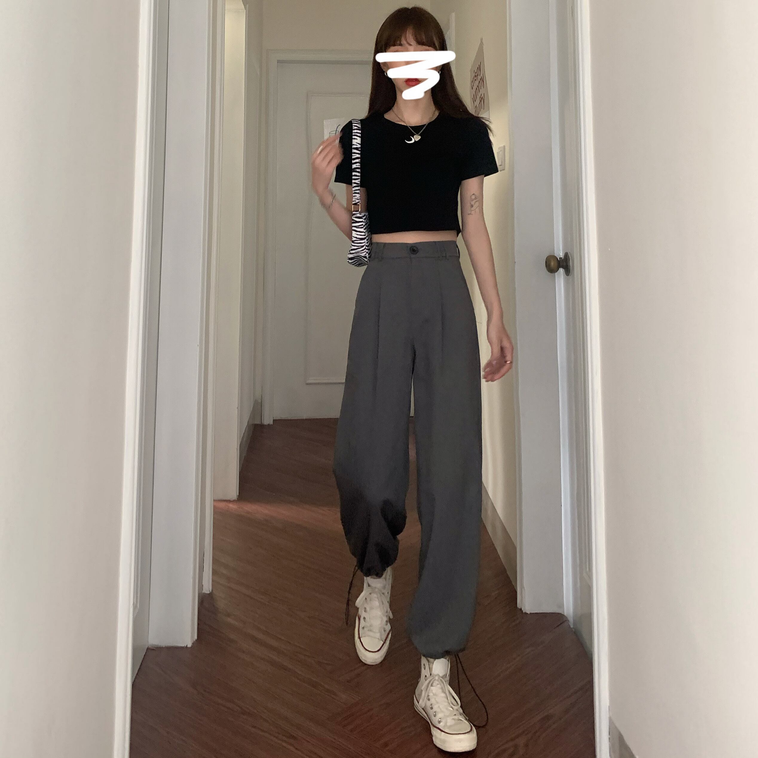 グレーパンツ スプリングオータムルーズ薄手ハイウェストウェストカジュアル 春物 秋物 スーパーモール87029651905