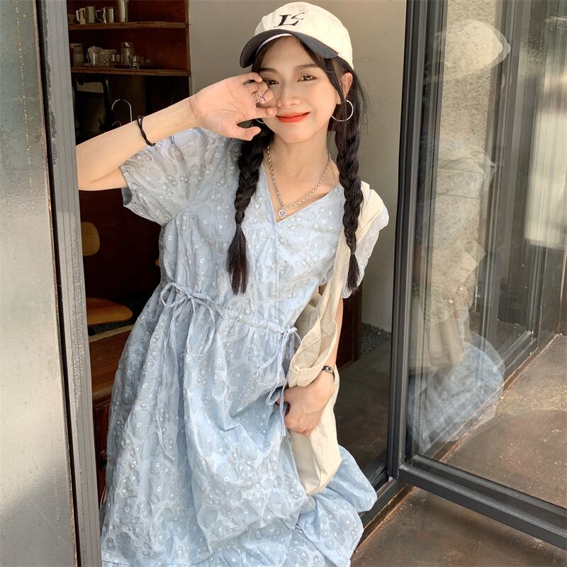 スタイルVネックスリーブドレス サマーロングスカート 夏物 スーパーモール20723235945