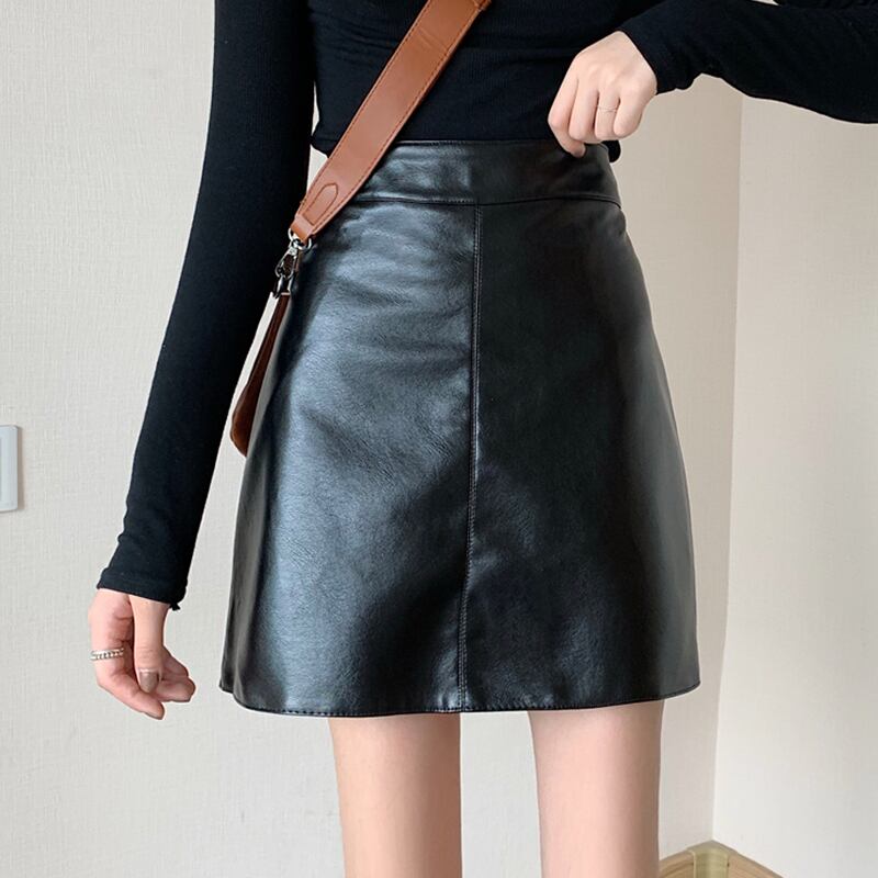スカート スプリングオータムレザーハイウェストウェストAラインショート 春物 秋物 スーパーモール18910159218